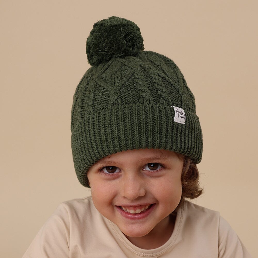 This beanie is a beautiful Olive colour and pairs well with many prints and designs in the Snuggle Hunny range.