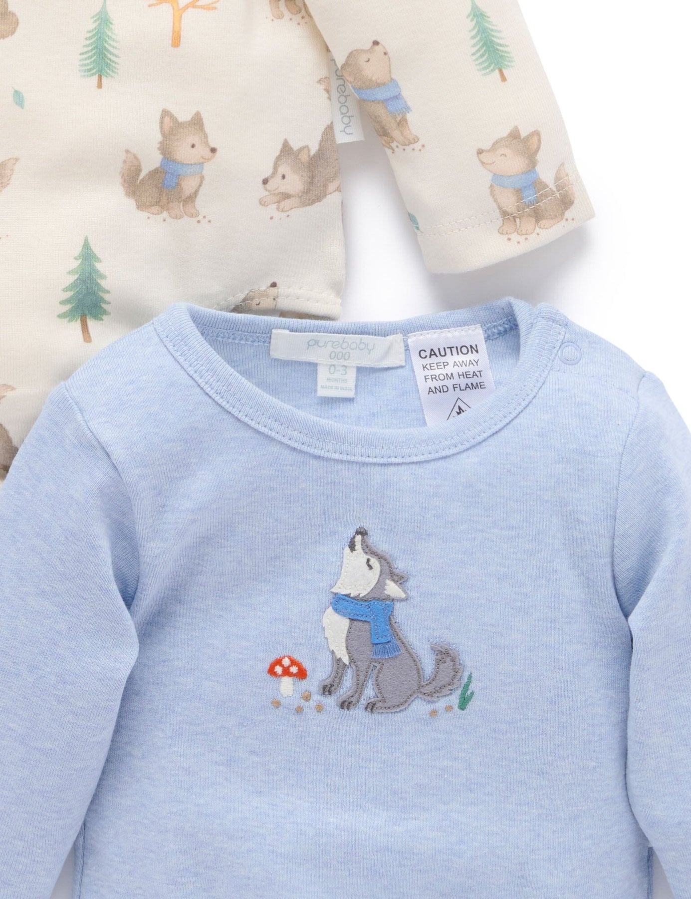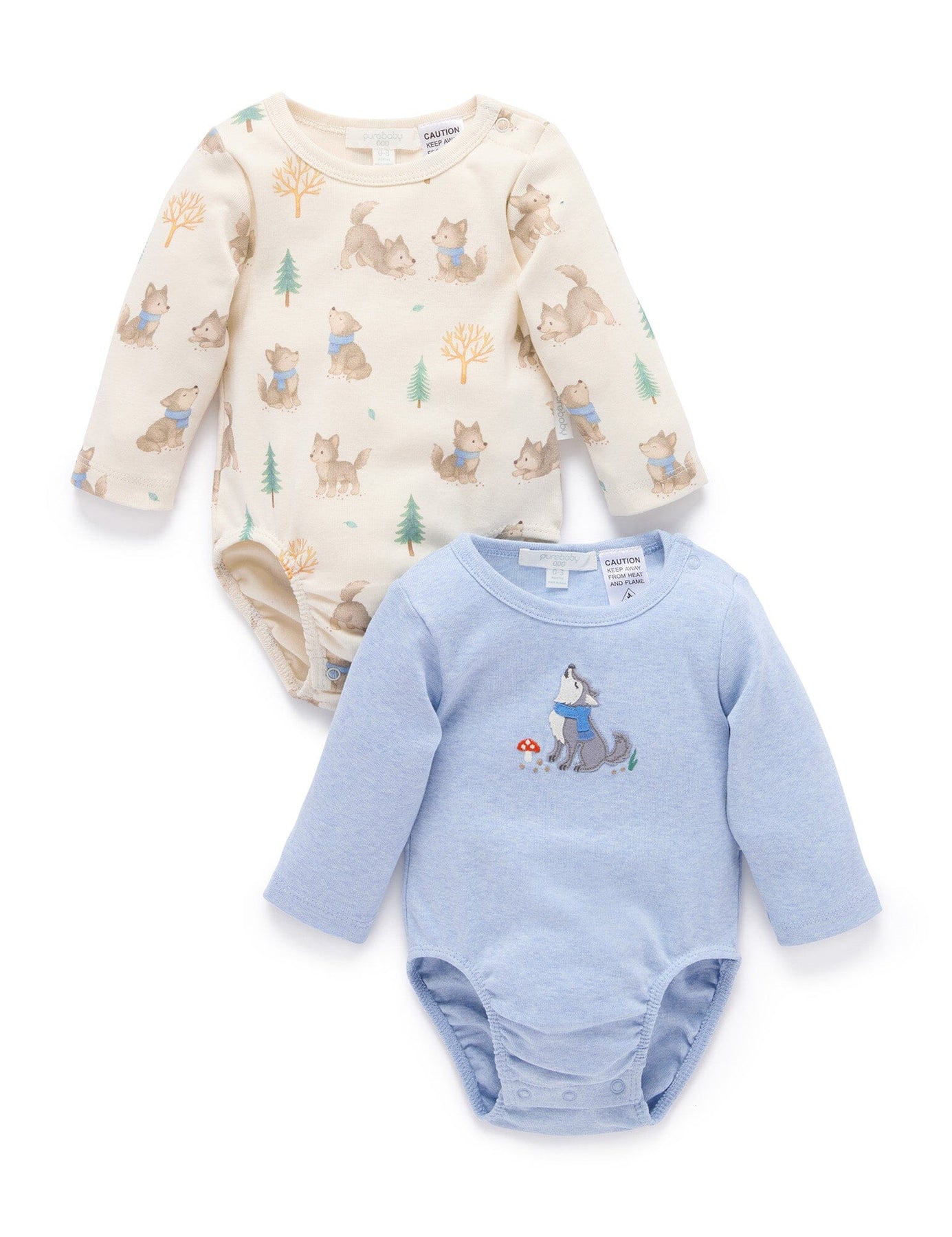 Pure Baby - 2 Pack Bodysuit | Wolf Cub Bodysuit Purebaby