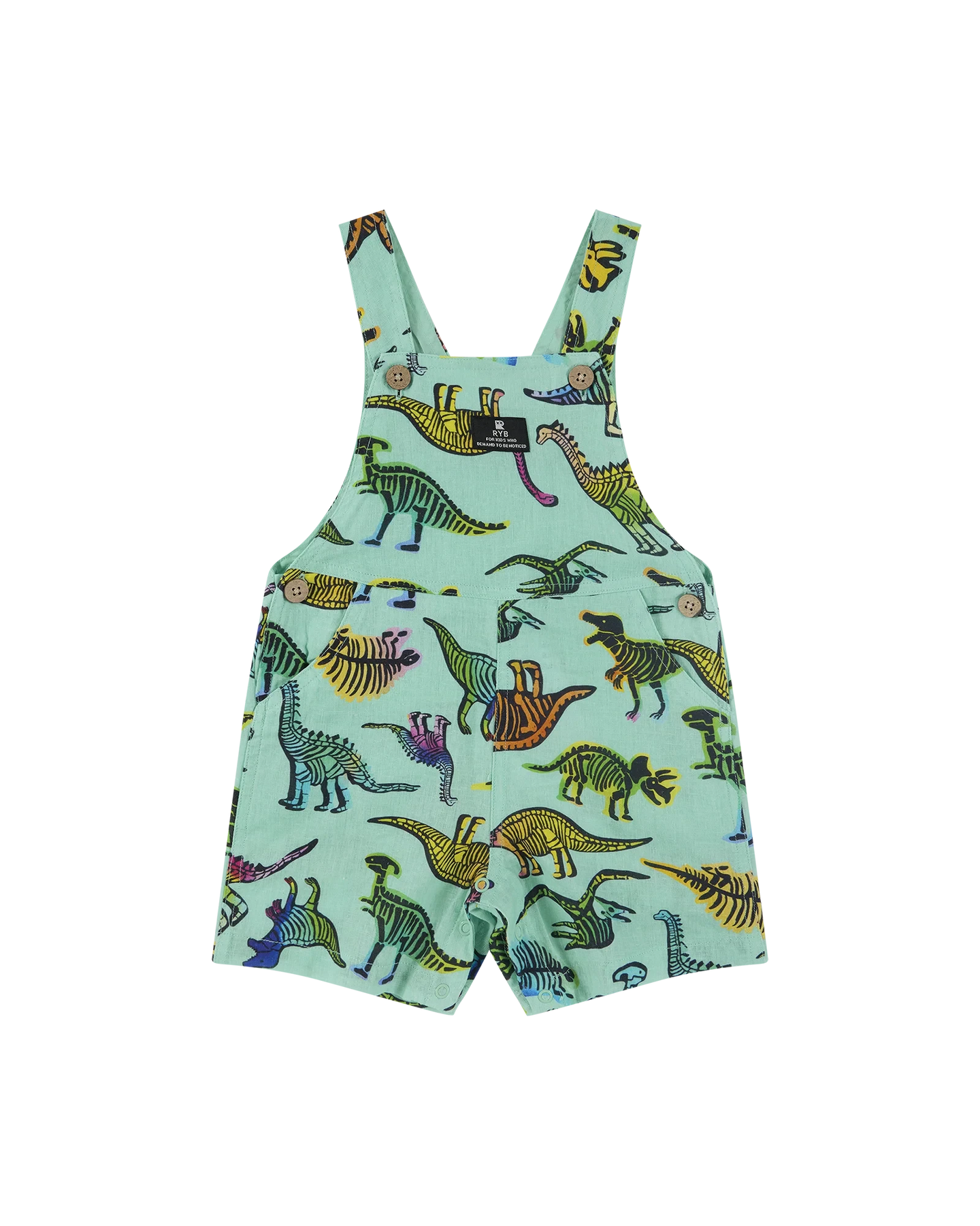 Roar into playtime with the Dino Pop Baby Overall in aqua. Made from a soft cotton linen blend, this baby overall features short legs, side pockets, a back pocket and an all-over dinosaur print for playful charm. Designed for comfort and easy wear, it’s perfect for warm days of crawling, toddling or outdoor adventures. Style it with a tee for endless smiles - get set to stomp.