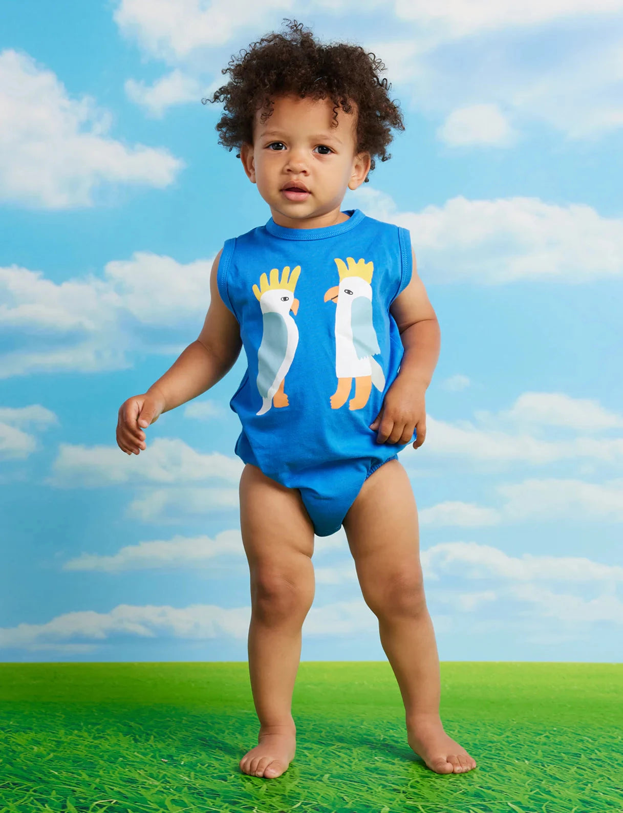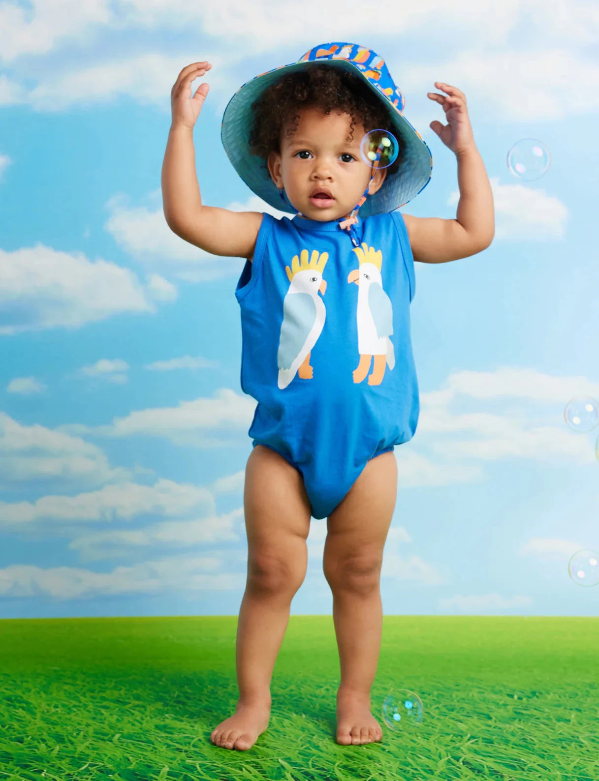 Get ready to embark on a playful adventures with our Blue Cockatoo Singletsuit.