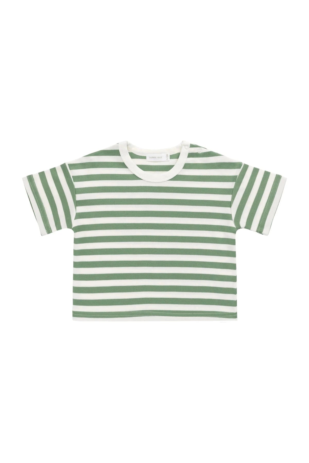 A beautifully soft everyday essential, the Pima Cotton Wesley Tee – Essential Stripe Parchment/Snow Pea features gentle green and white horizontal stripes with a classic white crew neckline. This timeless tee pairs perfectly with any outfit, offering comfort and style in equal measure.