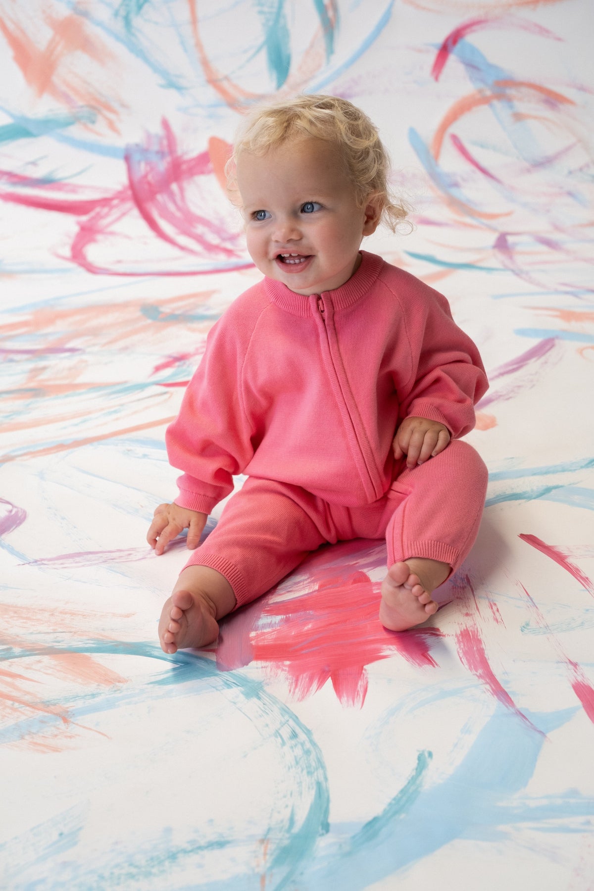 Grown - Organic Knit Zipper Starsuit | Bright Sorbet