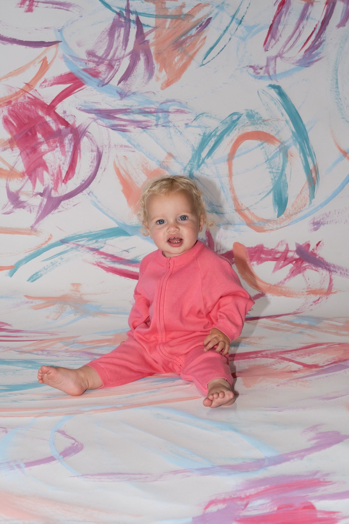 Grown - Organic Knit Zipper Starsuit | Bright Sorbet Jumpsuit Grown