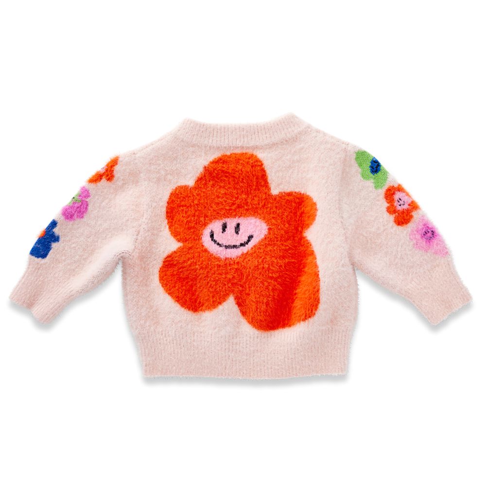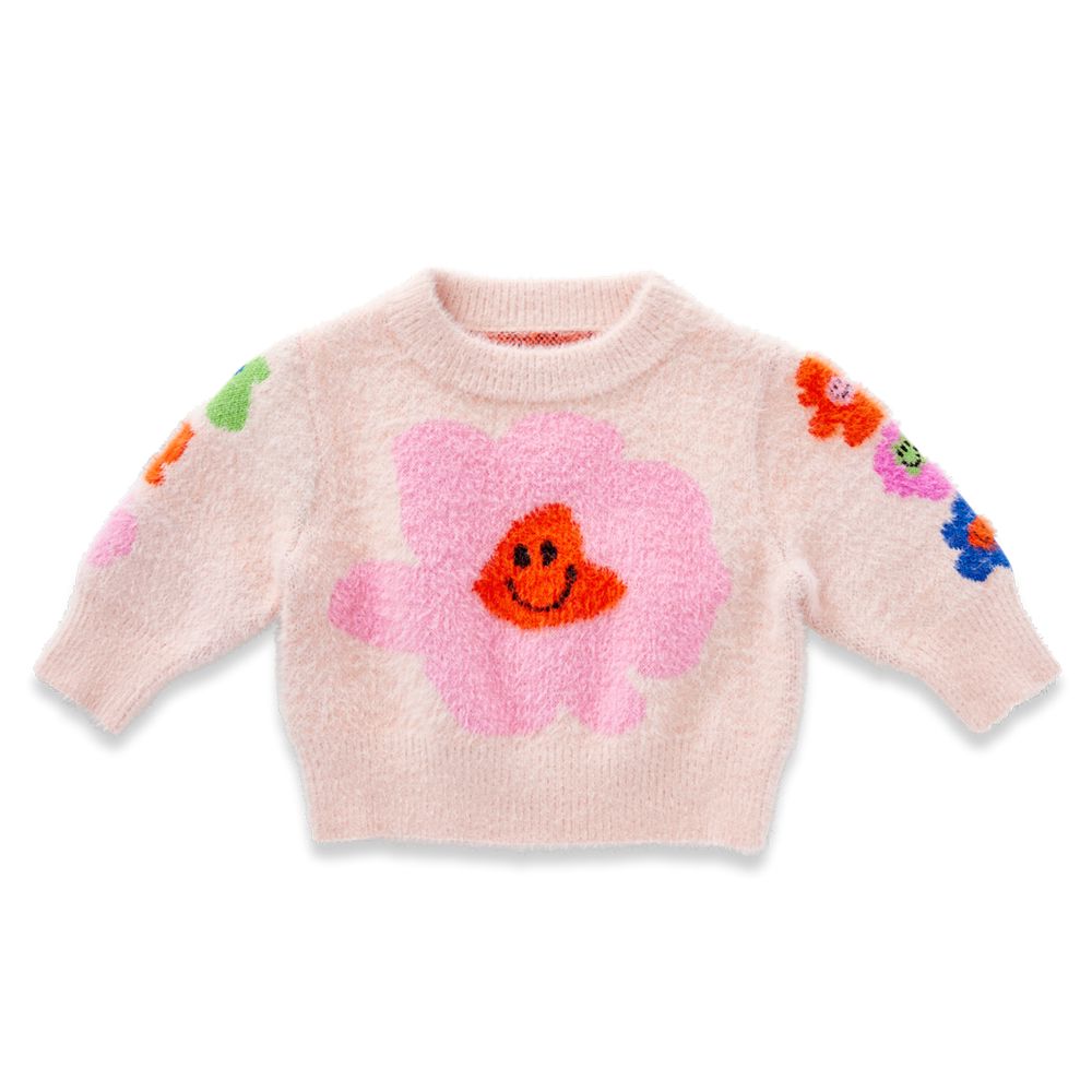 Features a crew neckline, subtle fluffy finish and picture knit design from our Hej Blomma! collection on both sides.