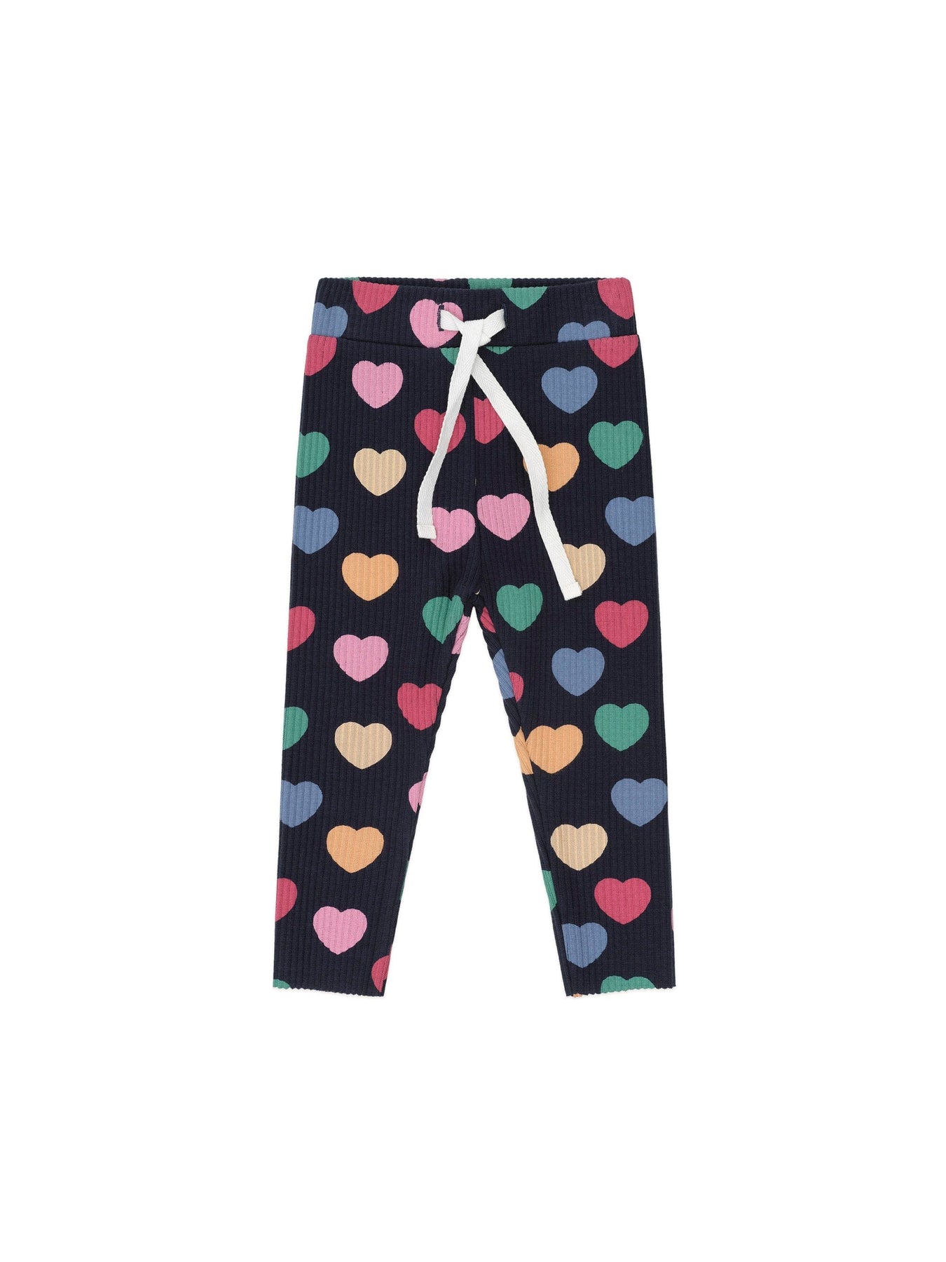 A versatile layering legging in our custom hearts print. These comfy pants are made from extra thick ribbed cotton to keep little bodies warm. They feature a soft yet stretchy waistband for ultimate tummy comfort and a drawstring closure for an adjustable fit. A true wardrobe essential.