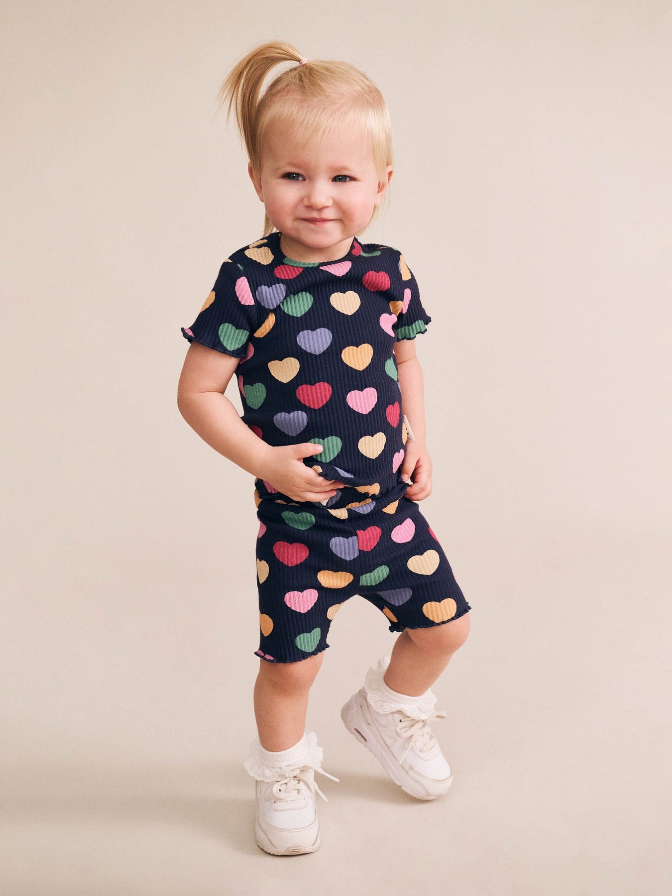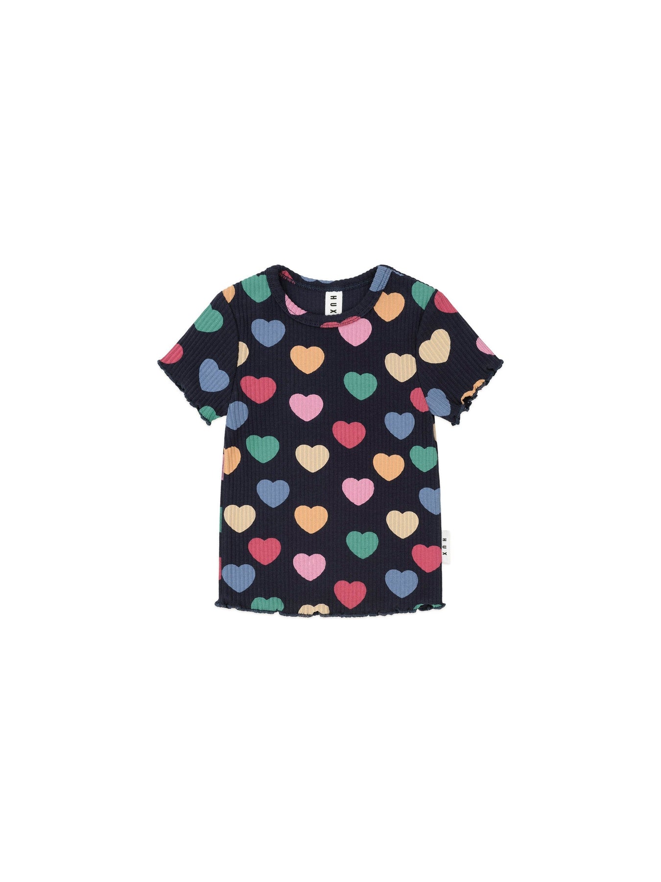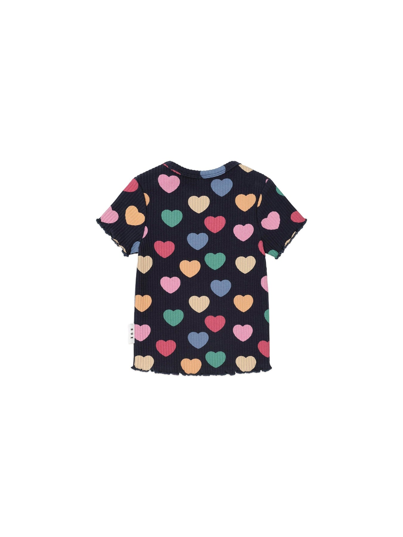 A versatile tee in our custom hearts print. This short-sleeved top is made from extra thick ribbed cotton and features a sweet lettuce edge detail.