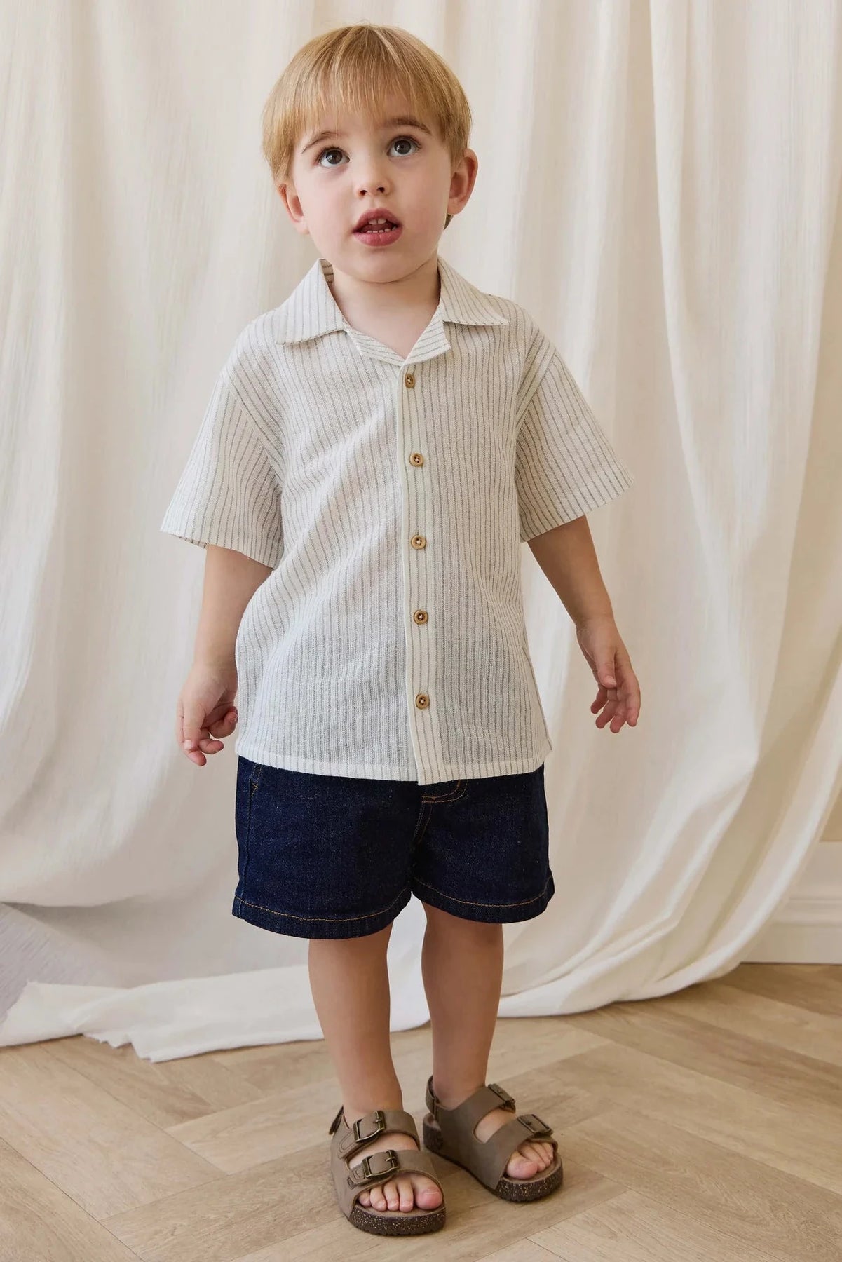 The Reid Denim Short in Mid Indigo Denim is a timeless and practical piece designed for everyday wear. Featuring a relaxed fit, elastic waistband, and functional pockets, these shorts are perfect for playtime while keeping your little one stylish and comfortable.