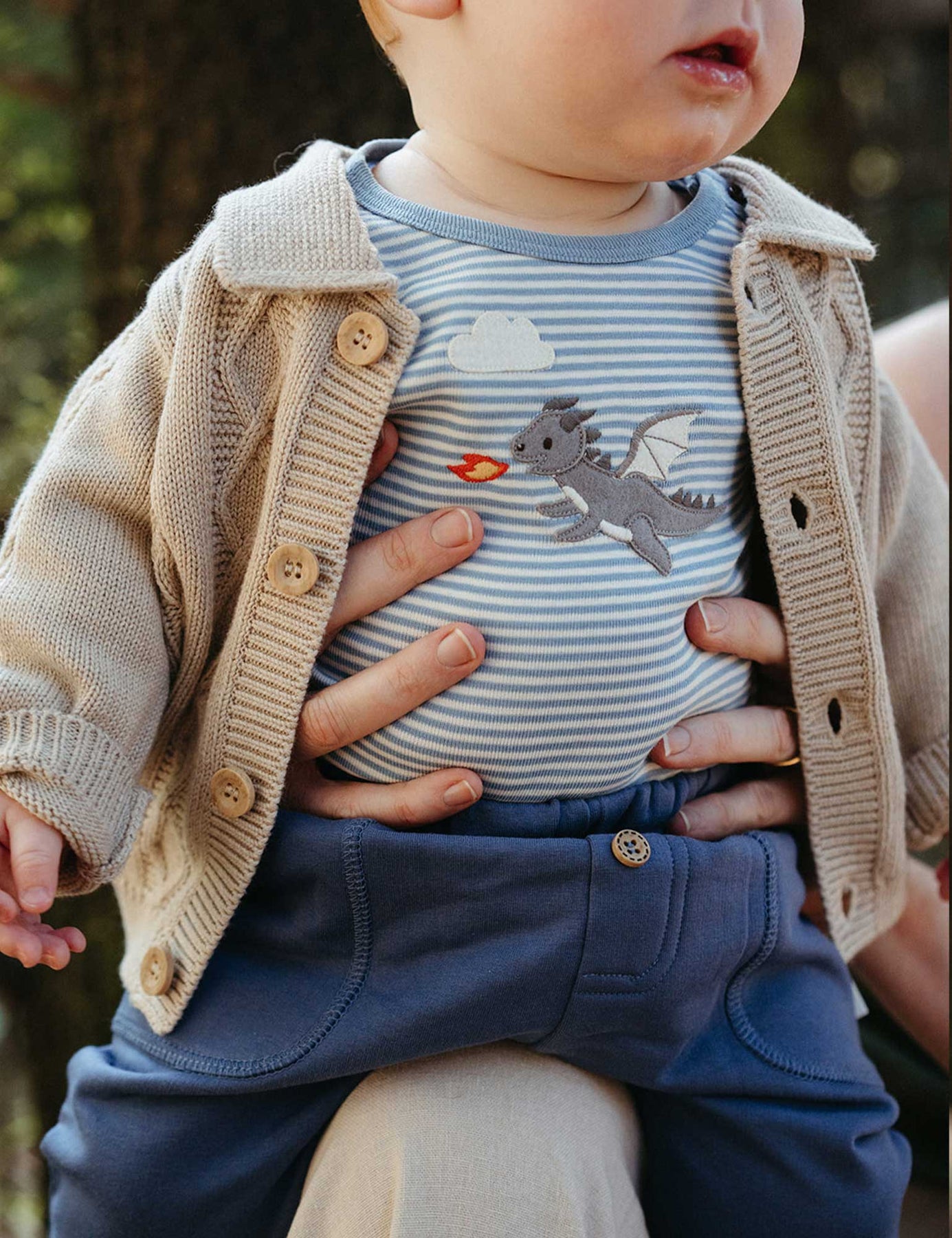 Our Applique Bodysuit is the sweetest layering piece for all seasons. Bodysuits are essential in your baby's wardrobe and an ideal layering piece all year round. Featuring a fun, fairytale forest themed applique at the chest! Designed with two rows of snap clips at the leg to grow with your little one, and allow for easy dressing. Made from our 100% Organic Cotton for a soft, gentle touch against their skin. Style with our Thick Leggings and Cable Padded Jacket for a cosy outfit.