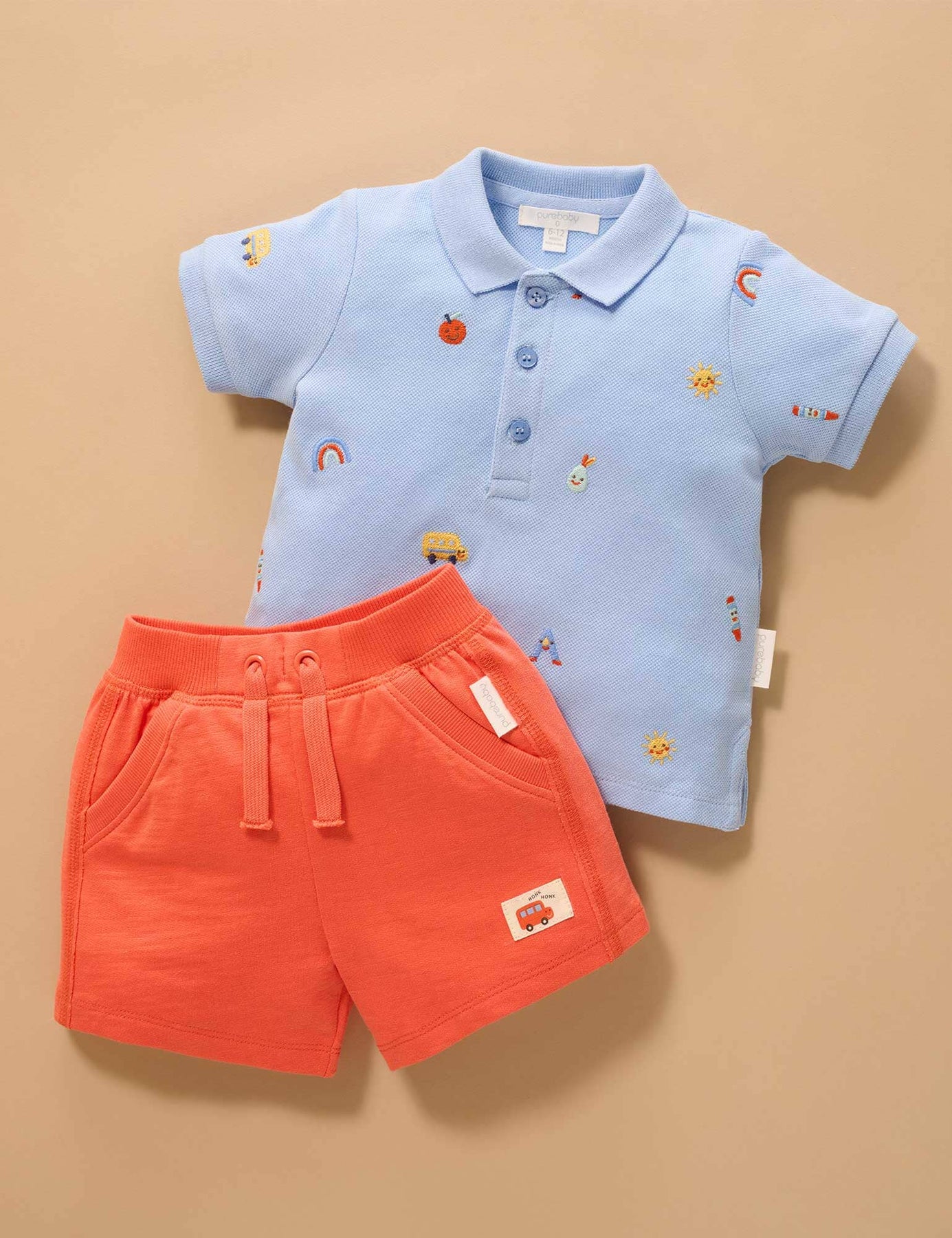 Fun and functional, our Alphabet Polo Shirt is a timeless addition to your little ones wardrobe. Featuring a colourful all over embroidery of rainbows, letters and more! Made from the softest 100% Organic Cotton pique for a soft, breathable summer shirt. Looks great paired with our Casual Shorts. This item is available in both baby & kids sizing. Perfect for matching with siblings, cousins and friends, or purchase multiple sizes for wear in future years.