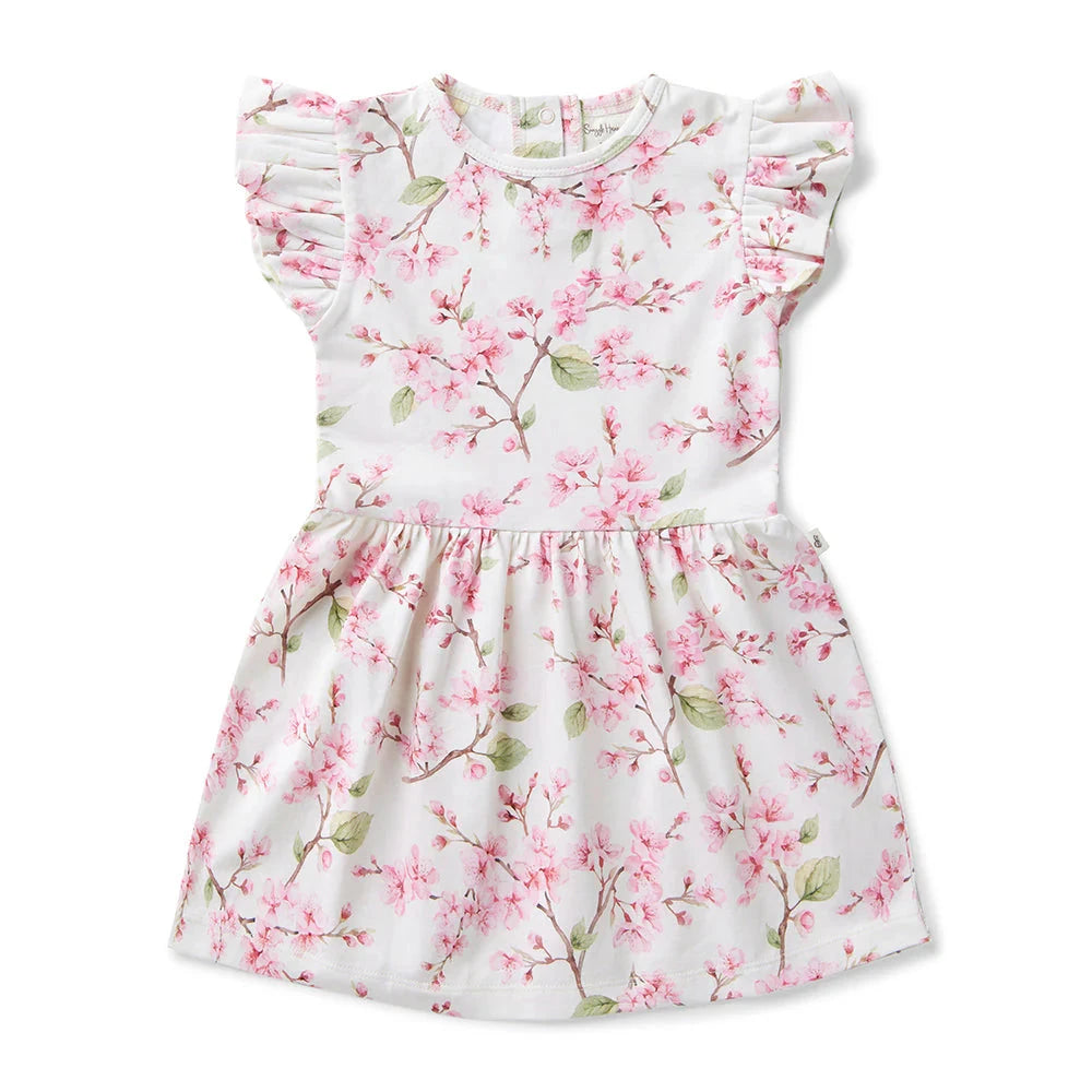 Snuggle Hunny - Organic Short Sleeve Dress | Cherry Blossom Short Sleeve Dress Snuggle Hunny