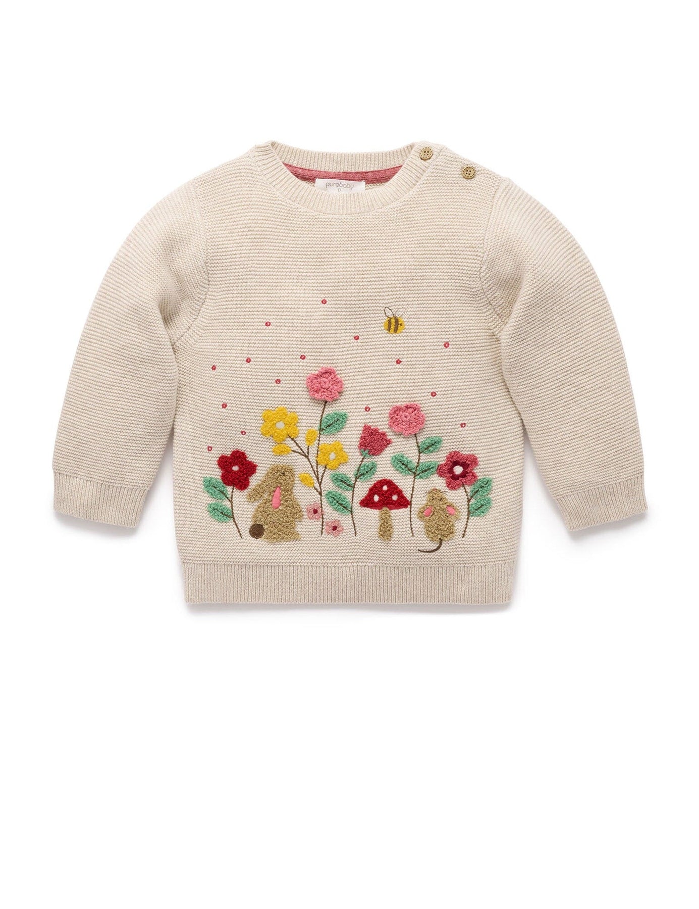 Our sweet Woodland Jumper features a fluffy applique of forest flowers and small creatures. Made from our organic cotton wool blend, this is a cosy piece which can be paired with our Thick Pocket Leggings and Beanie for a sweet outfit.