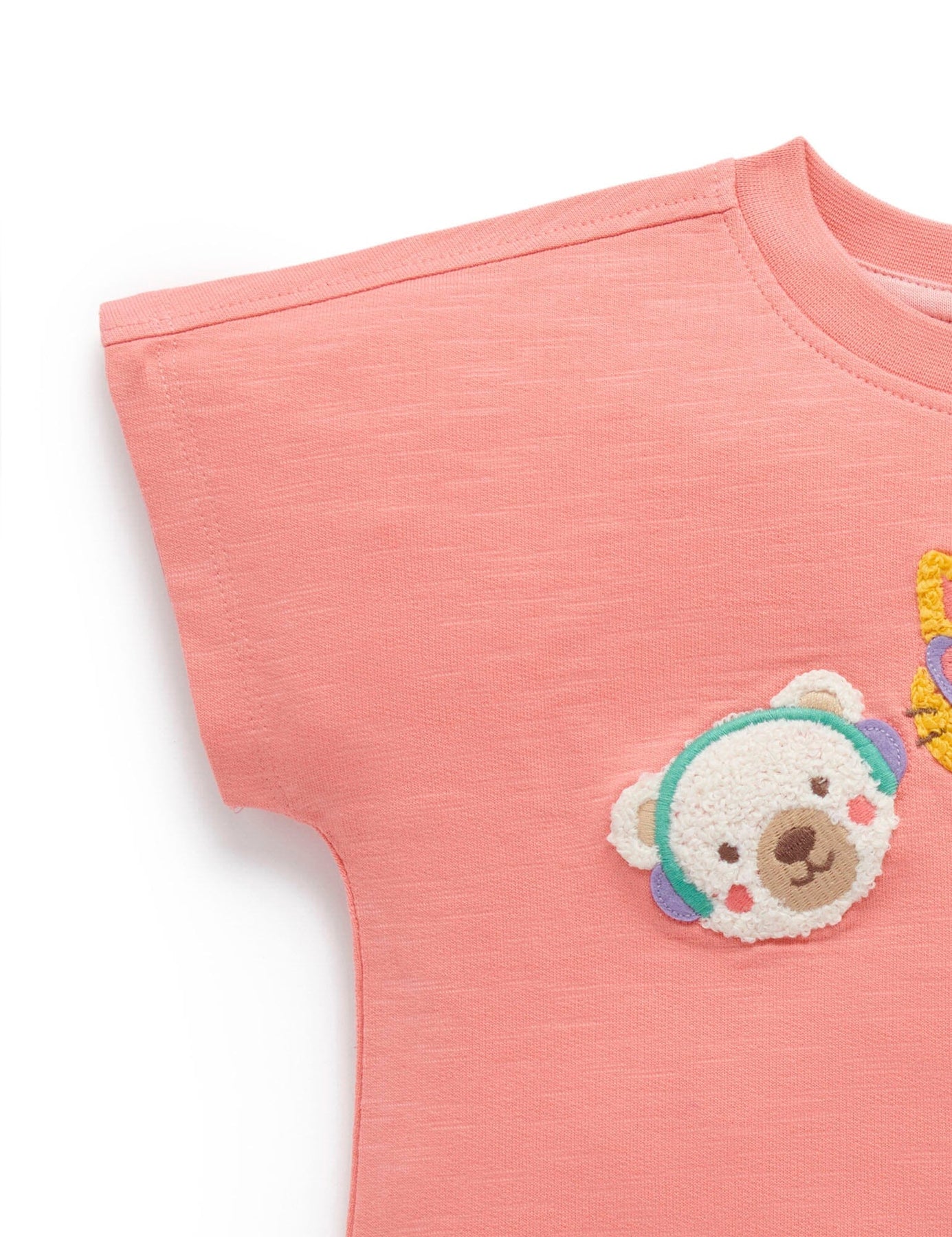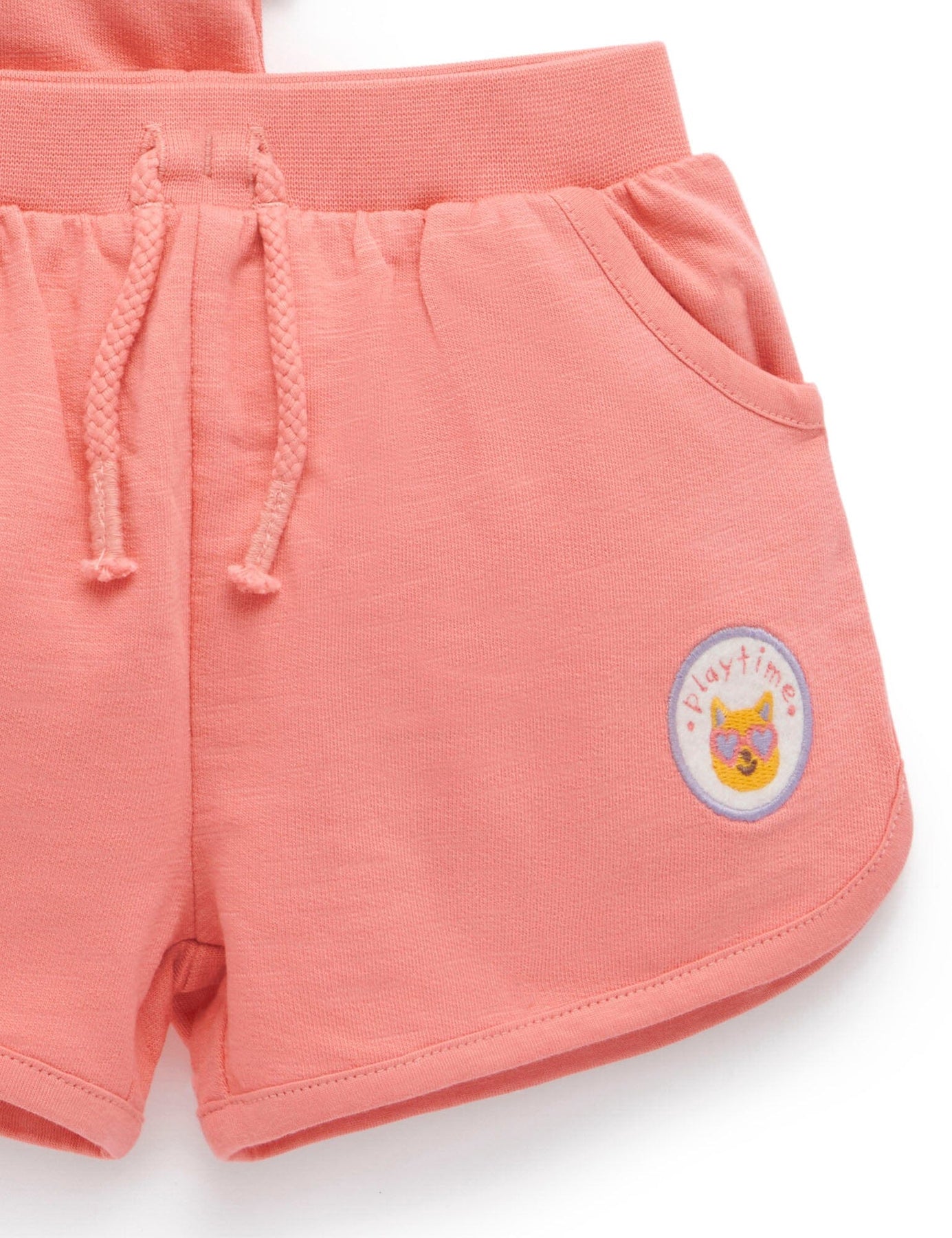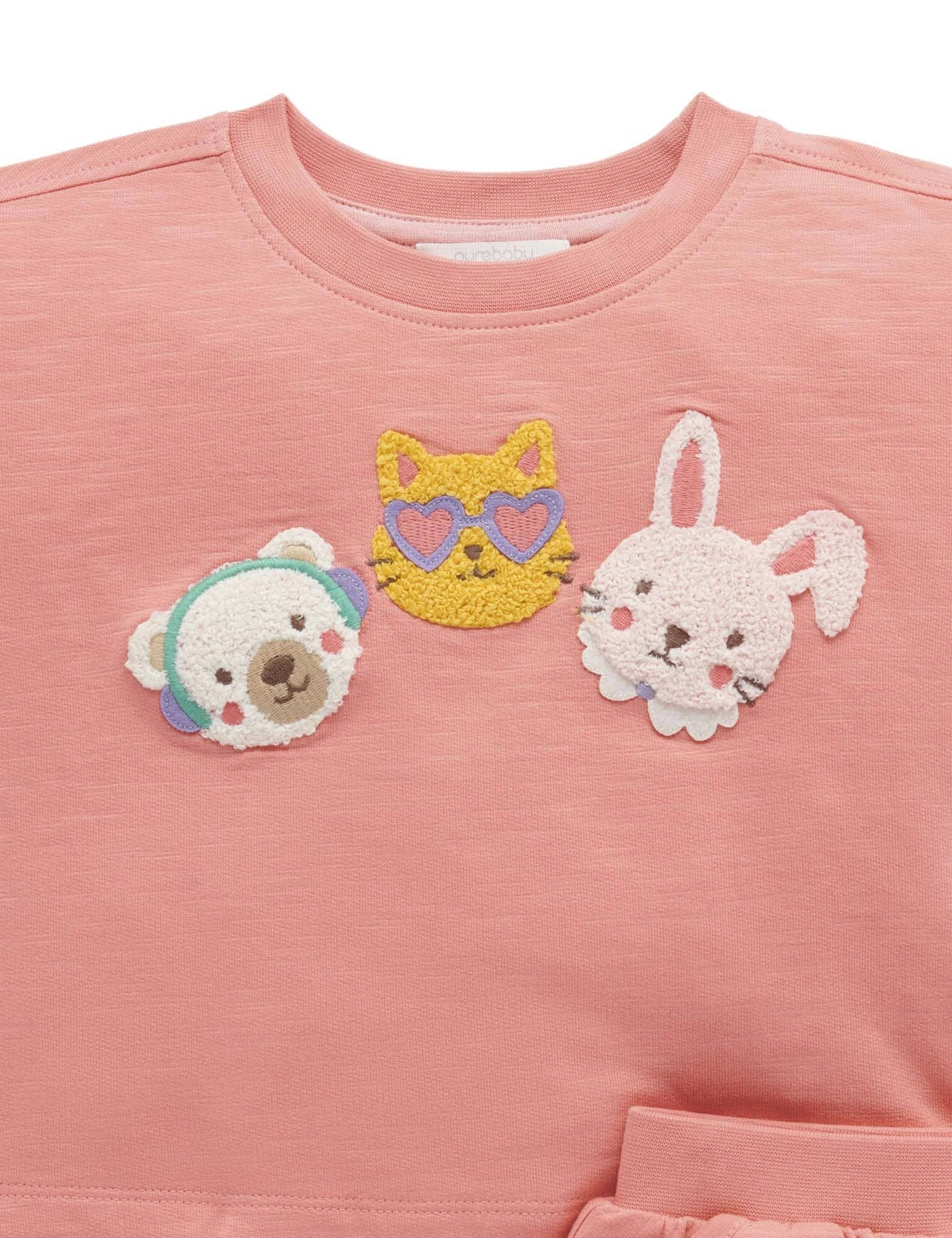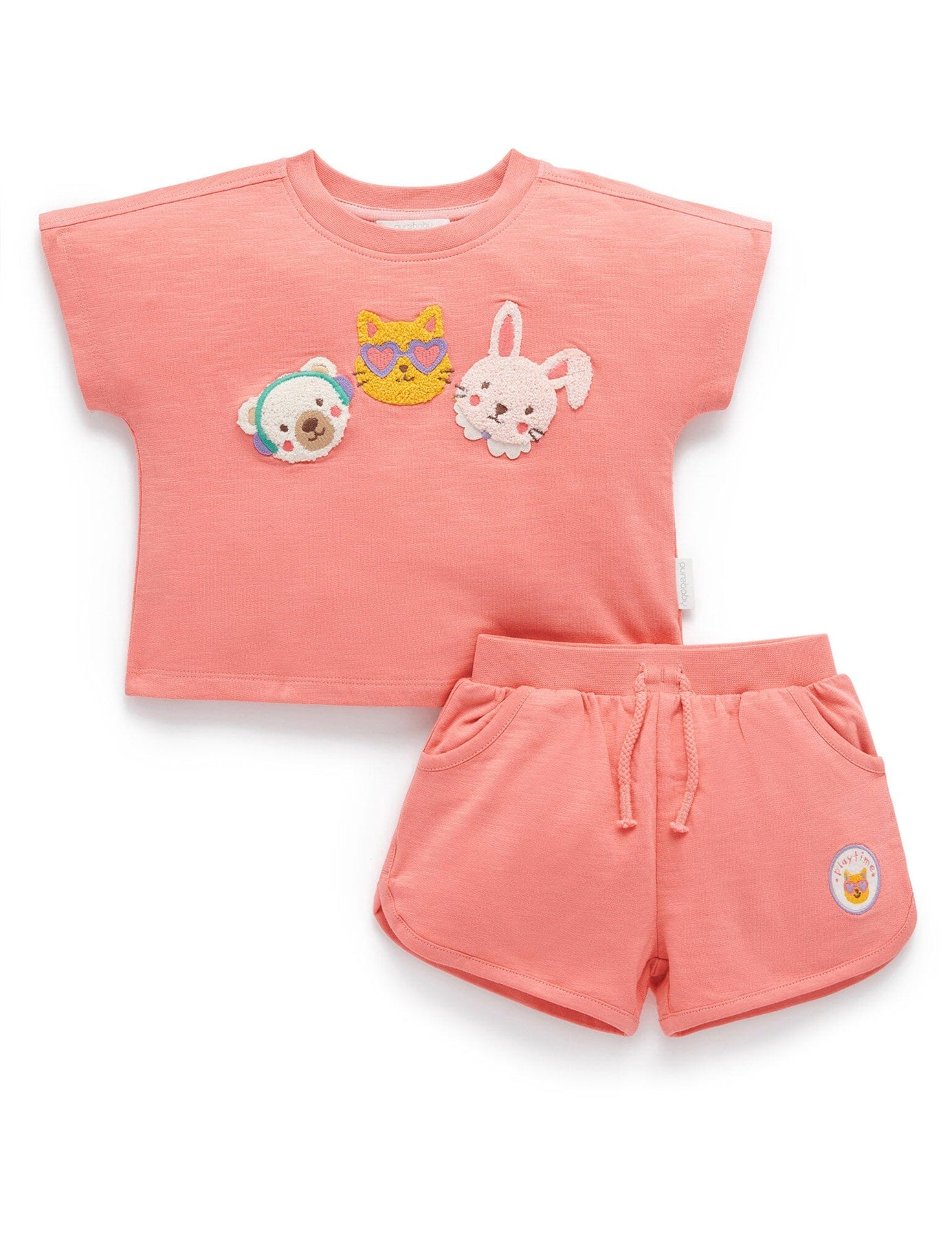 Our practical two piece Best Friends Track Set makes a perfect comfy, everyday outfit. Featuring a track tee in a relaxed fit, with fluffy chenille animal friends, and matching shorts. Made from soft, easy care 100% Organic Cotton unbrushed fleece, this is a roomy outfit that is comfy for play. This item is available in both baby & kids sizing. Perfect for matching with siblings, cousins and friends, or purchase multiple sizes for wear in future years.