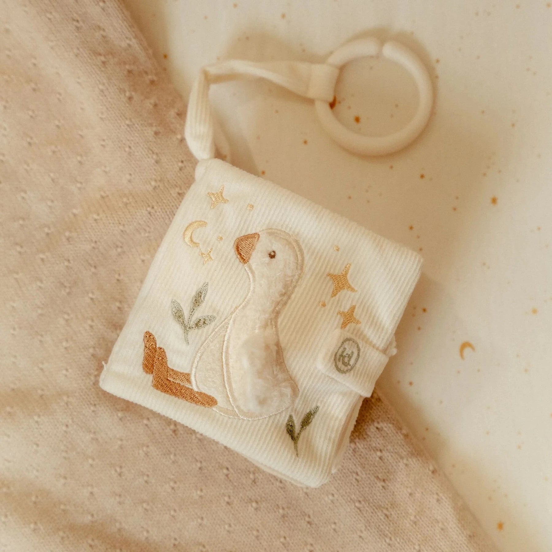 With the Newborn Naturals Stroller Book, your little one will always have something to discover! This soft book is filled with playful textures, crinkly pages, and sweet illustrations that stimulate the senses. Easy to hold and simple to at tach to the stroller, so the fun can go anywhere. Made from soft materials, perfect for little hands. An ideal first book to flip through, feel, and marvel at!