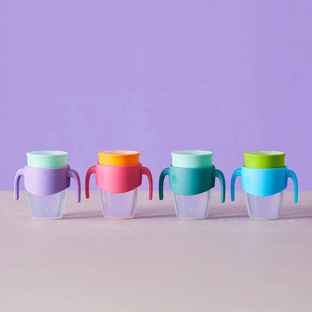 The 360 cup supports independent drinking, with a twist! Perfect for those moving from small sips to big kid drinking.