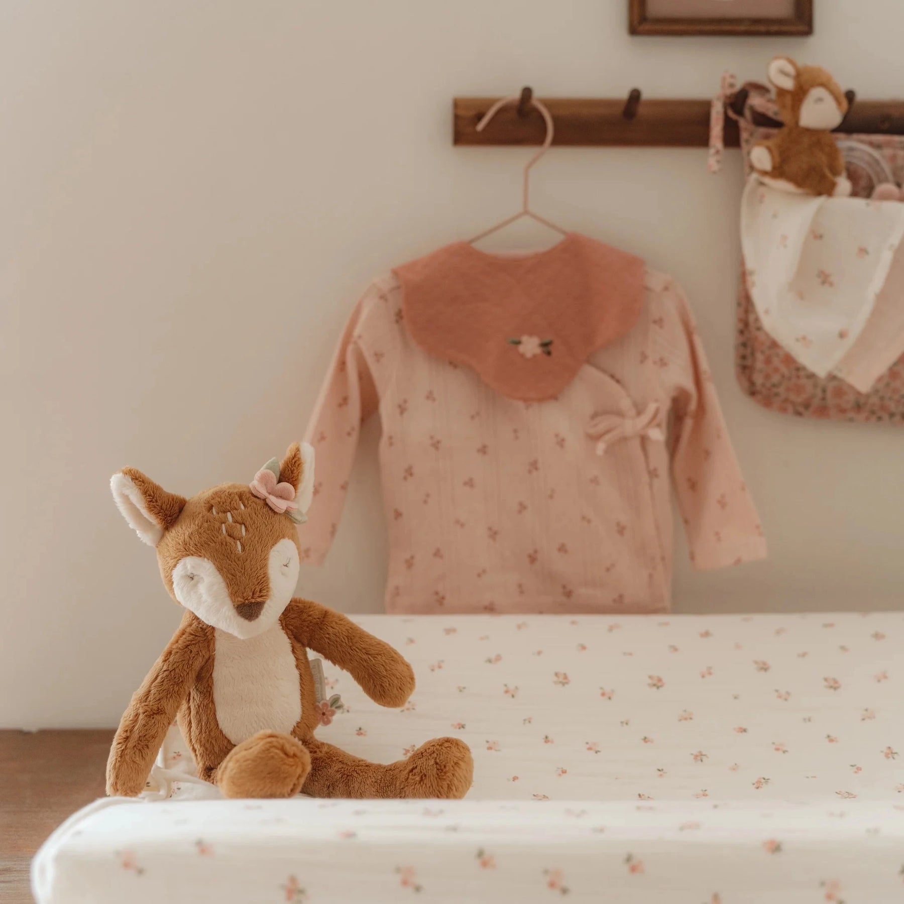 Come and give this cuddly deer a hug! With her lovely grin and open arms, she invites you for cuddles and play. Her charmingly long legs make it easy to carry her with you, no matter what the day brings. She will go on adventures with you, into the magical Fairy Garden, and sit beside you during story time. Whether exploring the beautiful outdoors or cozying up for naptime, this cuddle deer is always ready to accompany you on your journey of imagination and discovery.