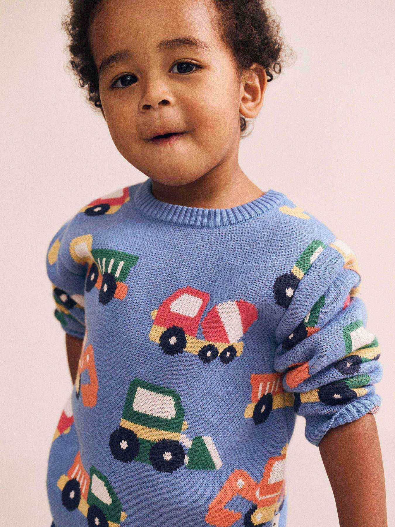 Meet the ‘wear everywhere’ sweater. This knit jumper is made from premium organic cotton in a deliciously soft jacquard knit with our custom construction print. Light enough to layer and cosy enough to wear on its own, it’ll keep your little one snug as a bug. Featuring shoulder buttons in baby sizes for easy dressing.