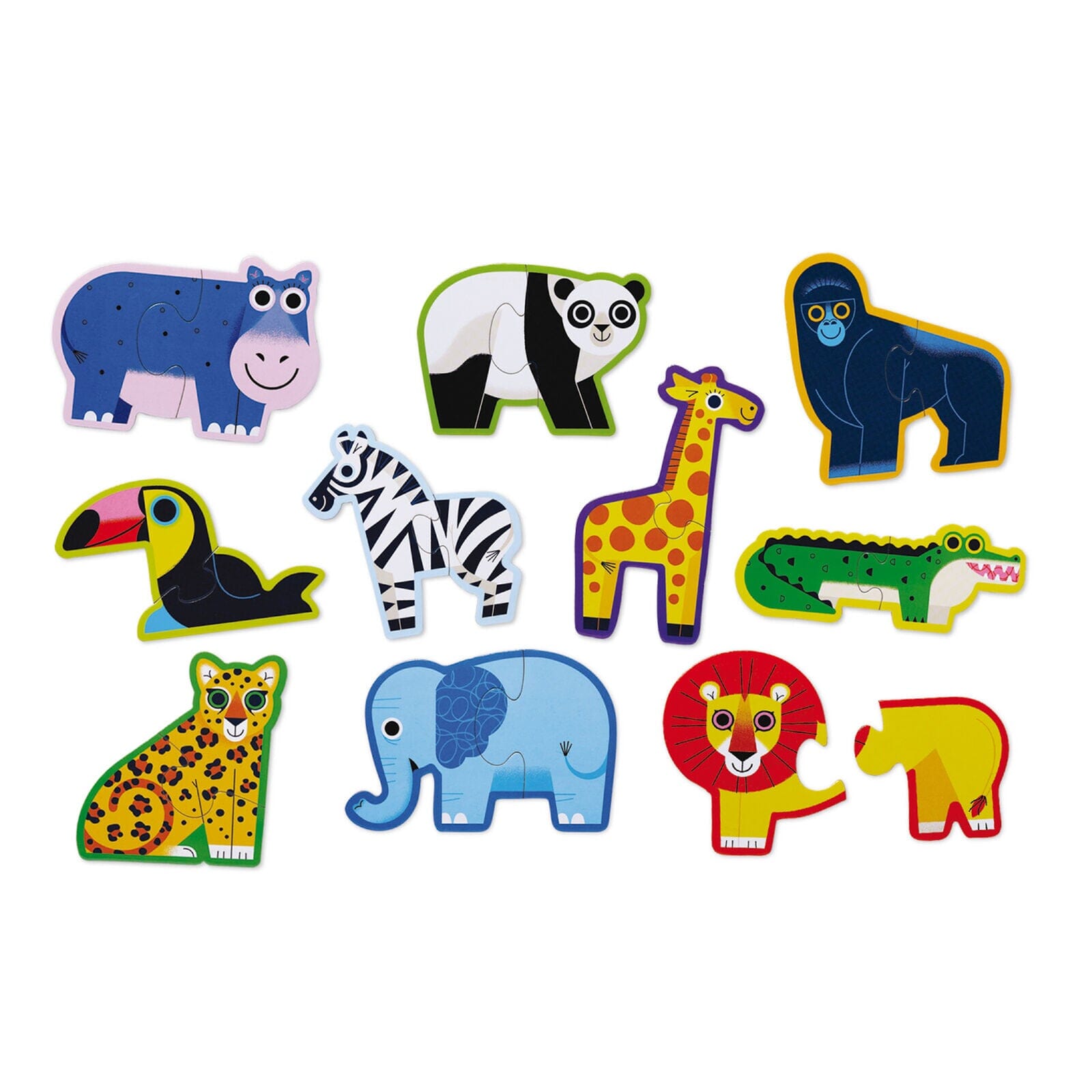 • 10 different 2-piece puzzles with pieces perfect for little hands