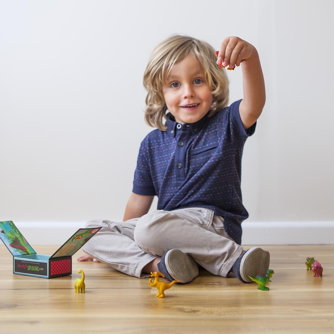 The Tribe of Dinosaurs box converts into a beautifully illustrated back drop for play and display.