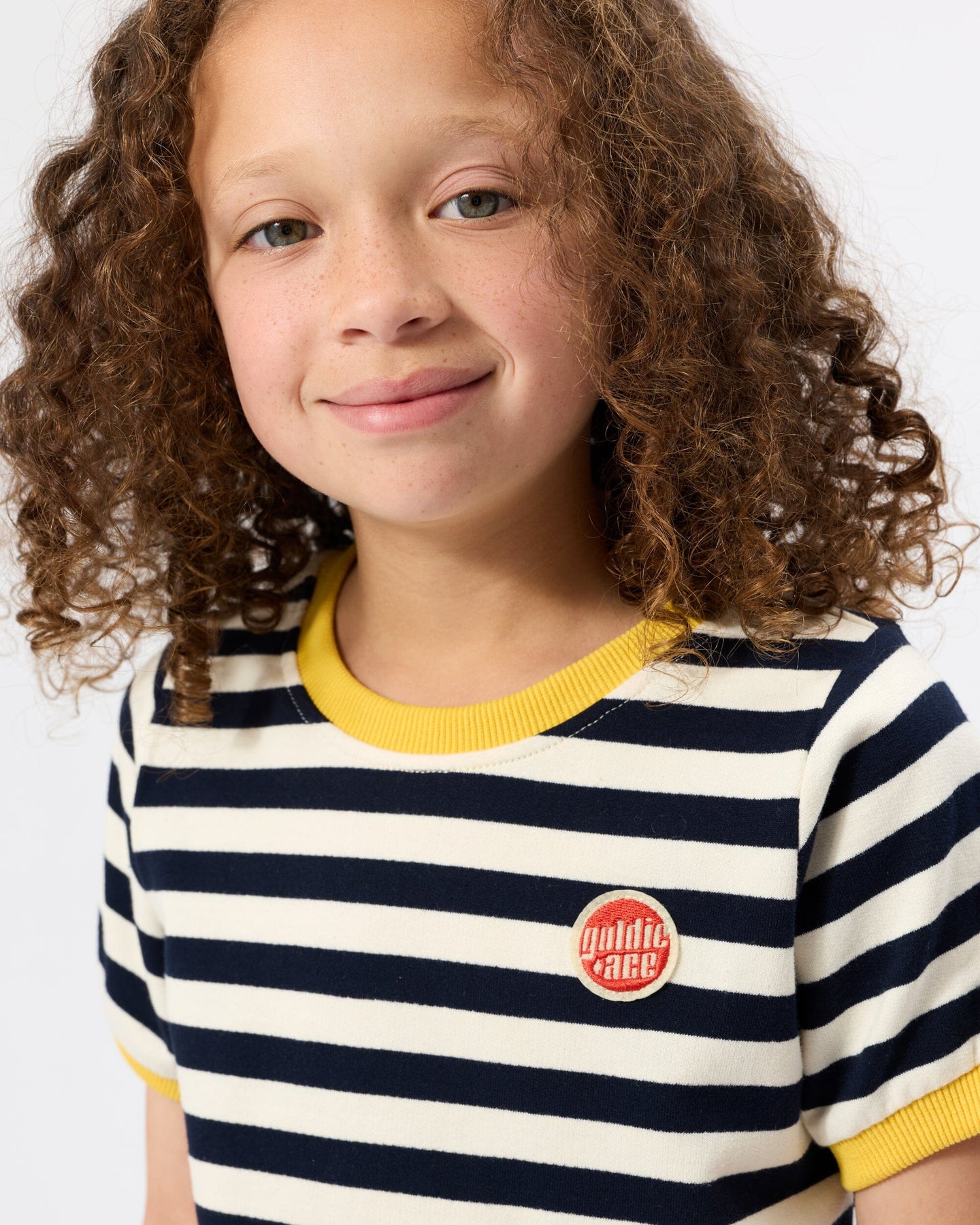 A signature brand badge adds a touch of Goldie + Ace's unique design.