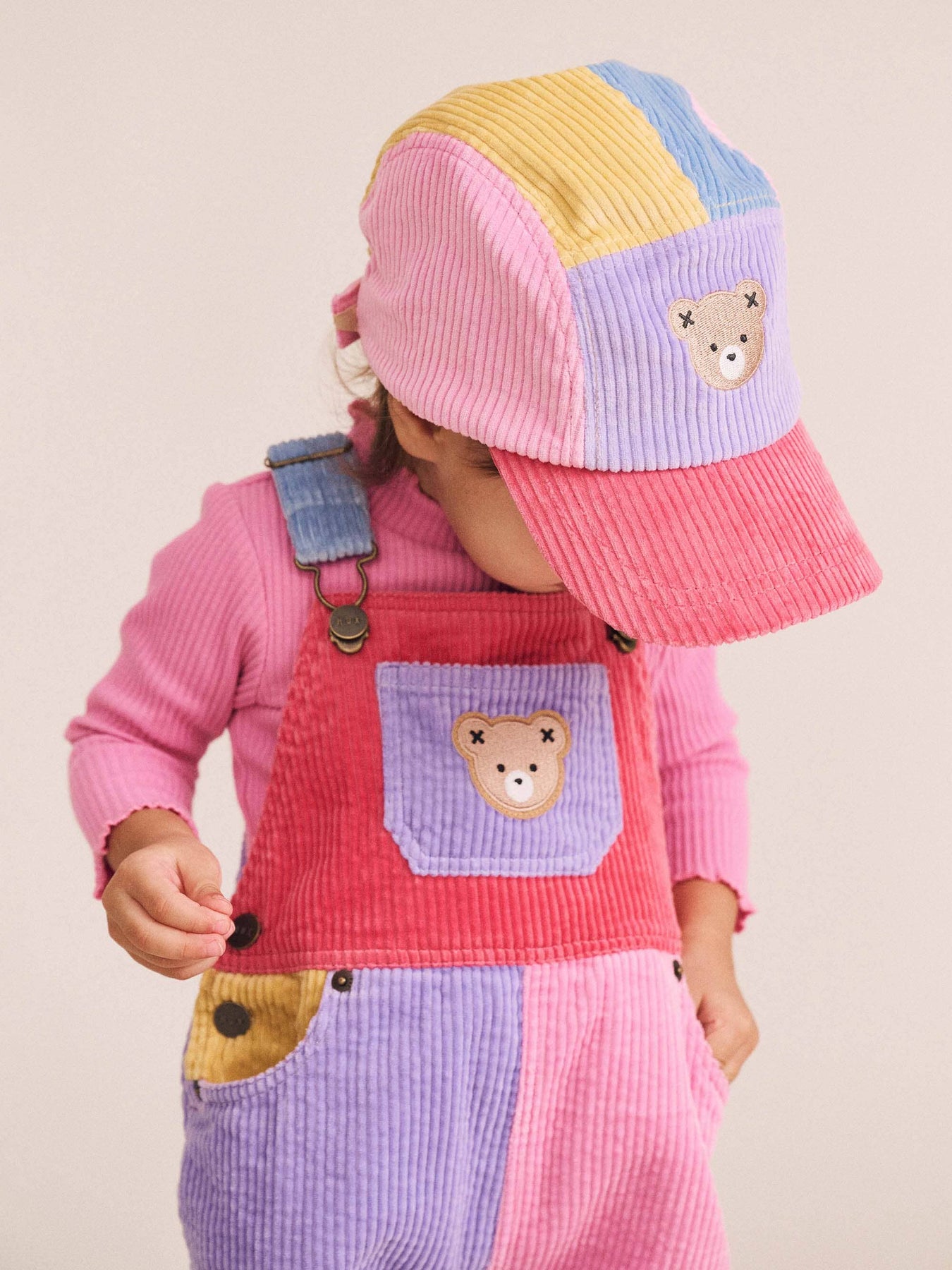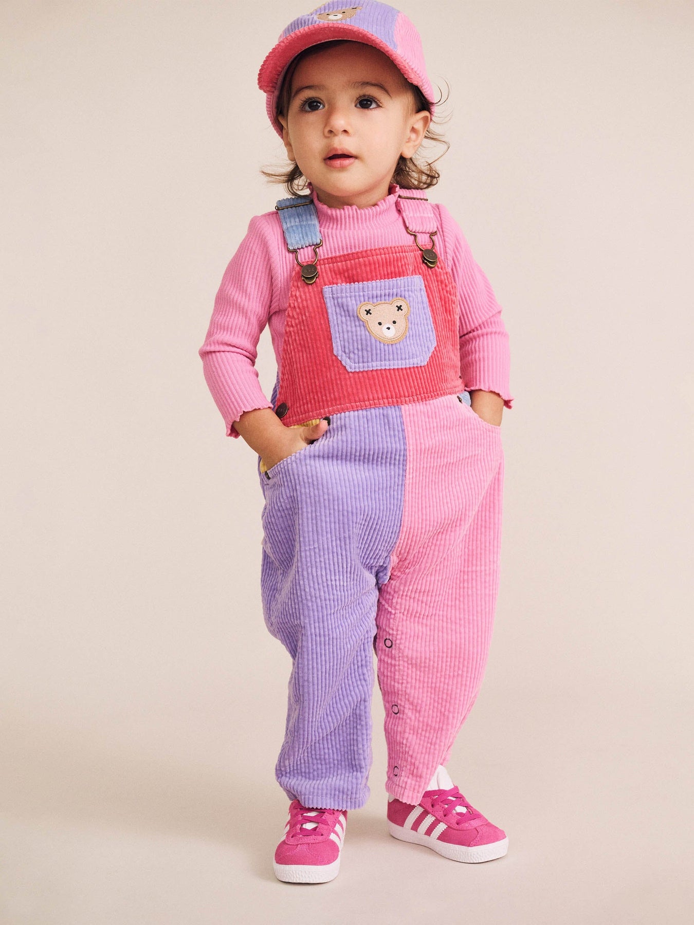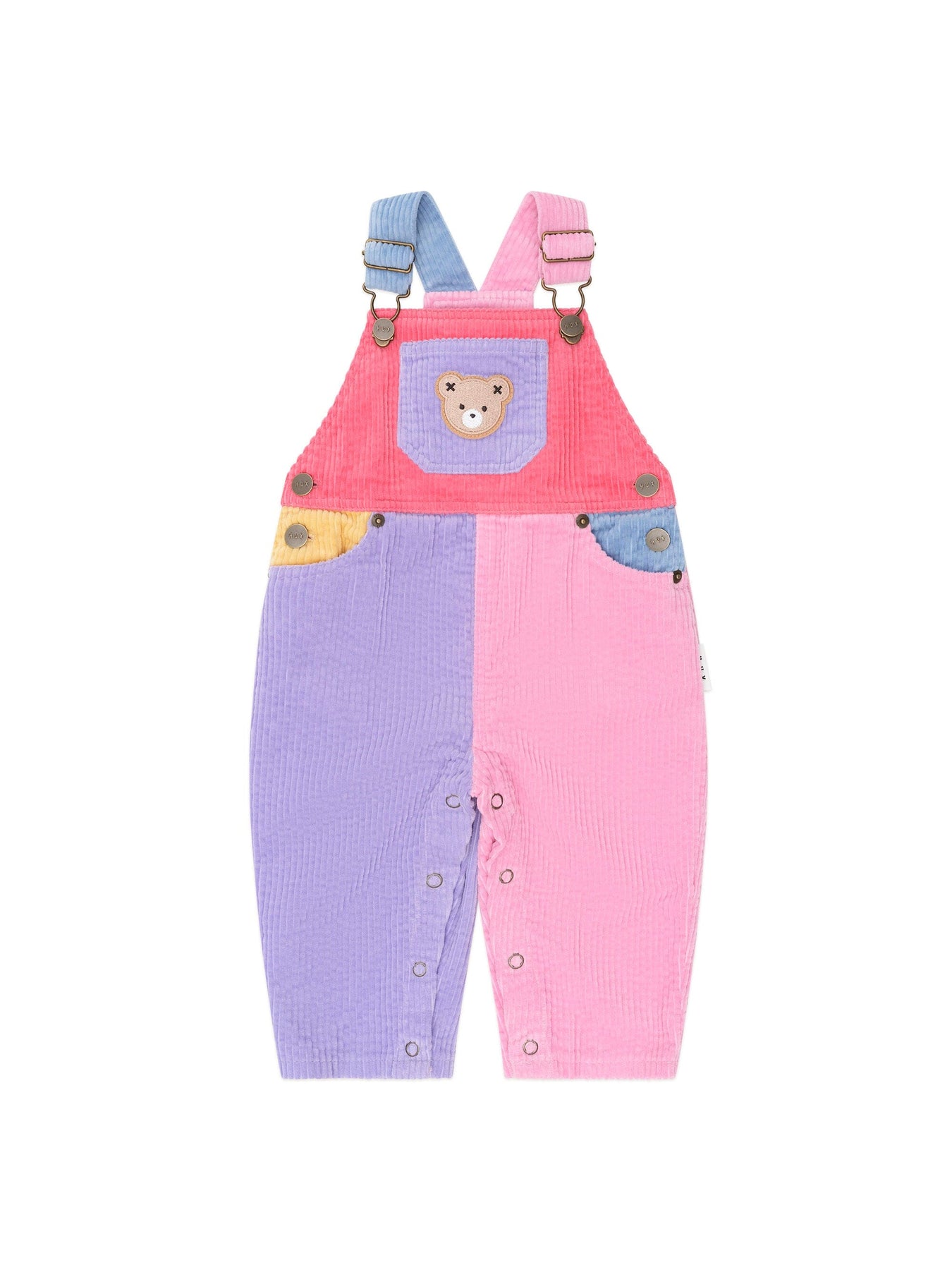 It doesn’t get much cuter than this colour blocked overall. Designed with a 90s cut in super soft cotton twill, it features adjustable straps, Huxbear embroidery, and a practical front pocket perfect for stashing snacks.