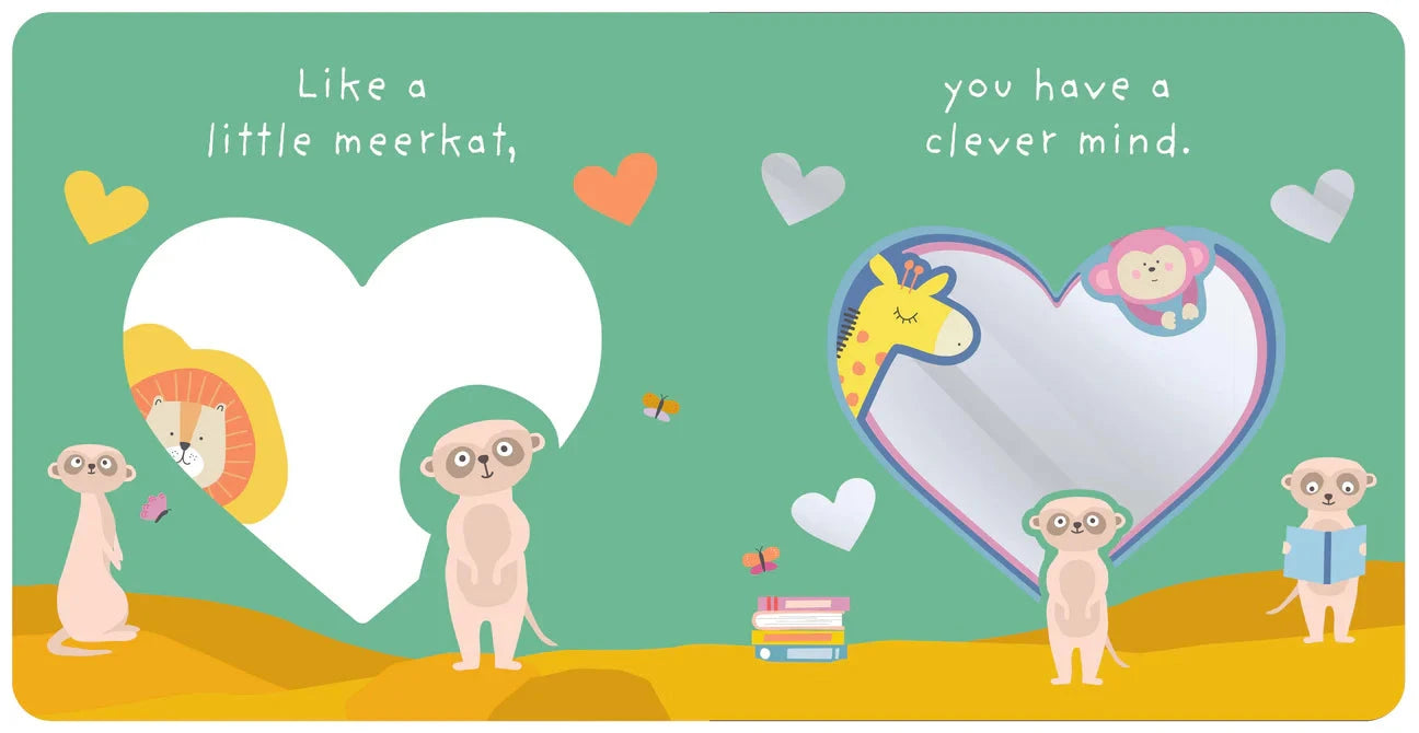 This sweet board book is designed to be enjoyed during cosy reading time between little ones and their caregivers and celebrates the beautiful message that children are loved just the way they are. Little ones will be captivated by sweet illustrations of animal friends playing with their families. Simple rhyming text will engage young readers time and time again. Graduating die-cuts lead to a mirror on the final spread that reveal the little reader’s own adorable face, inviting them to become part of the story.