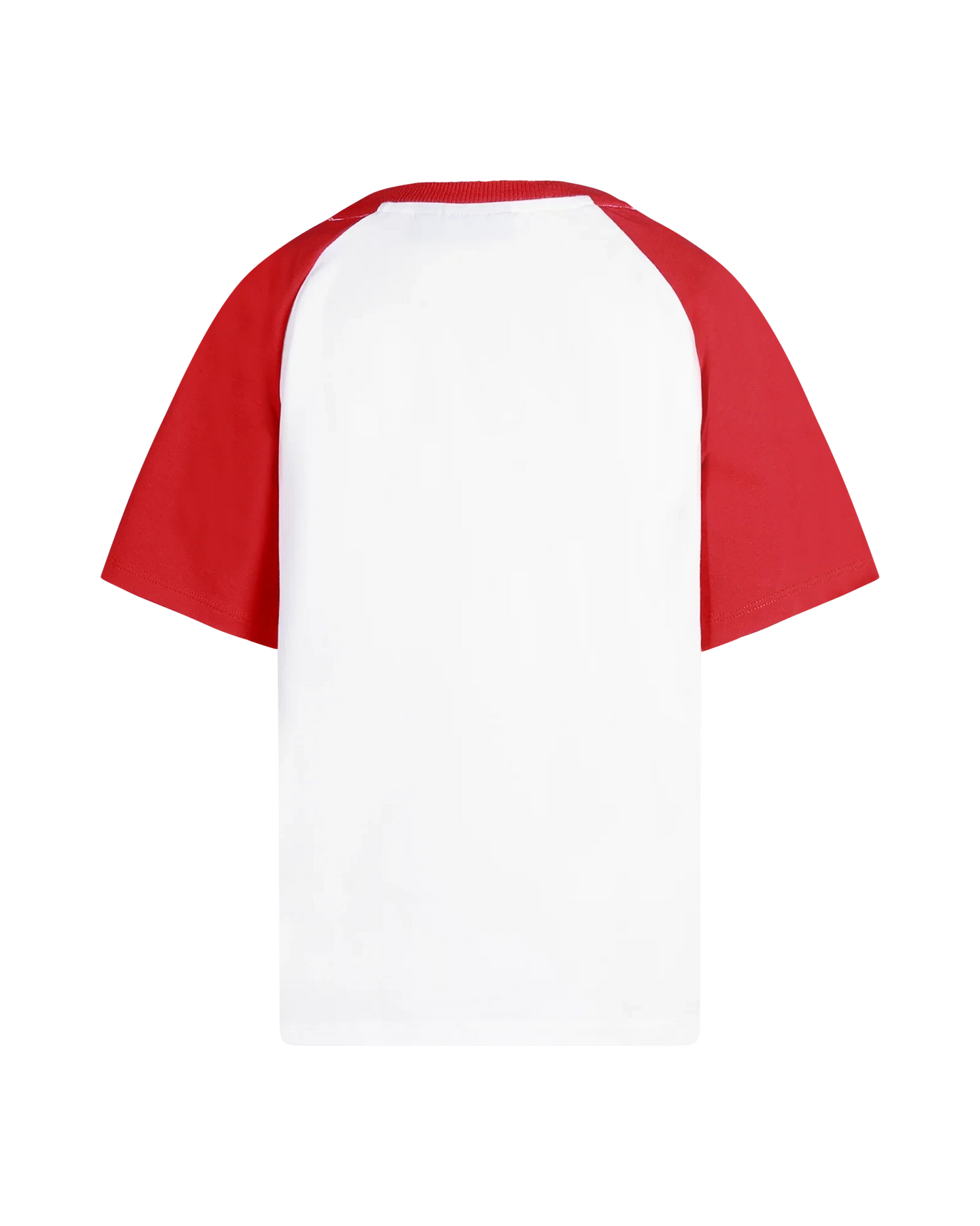 Bring playful vibes to their wardrobe with the Cherry Cat Kylie Raglan T-Shirt! This fun cotton jersey tee features a cream body with cherry red raglan sleeves, a contrast rib neckline, and a bold Cherry Cat graphic on the front - perfect for everyday adventures and sunny summer days.