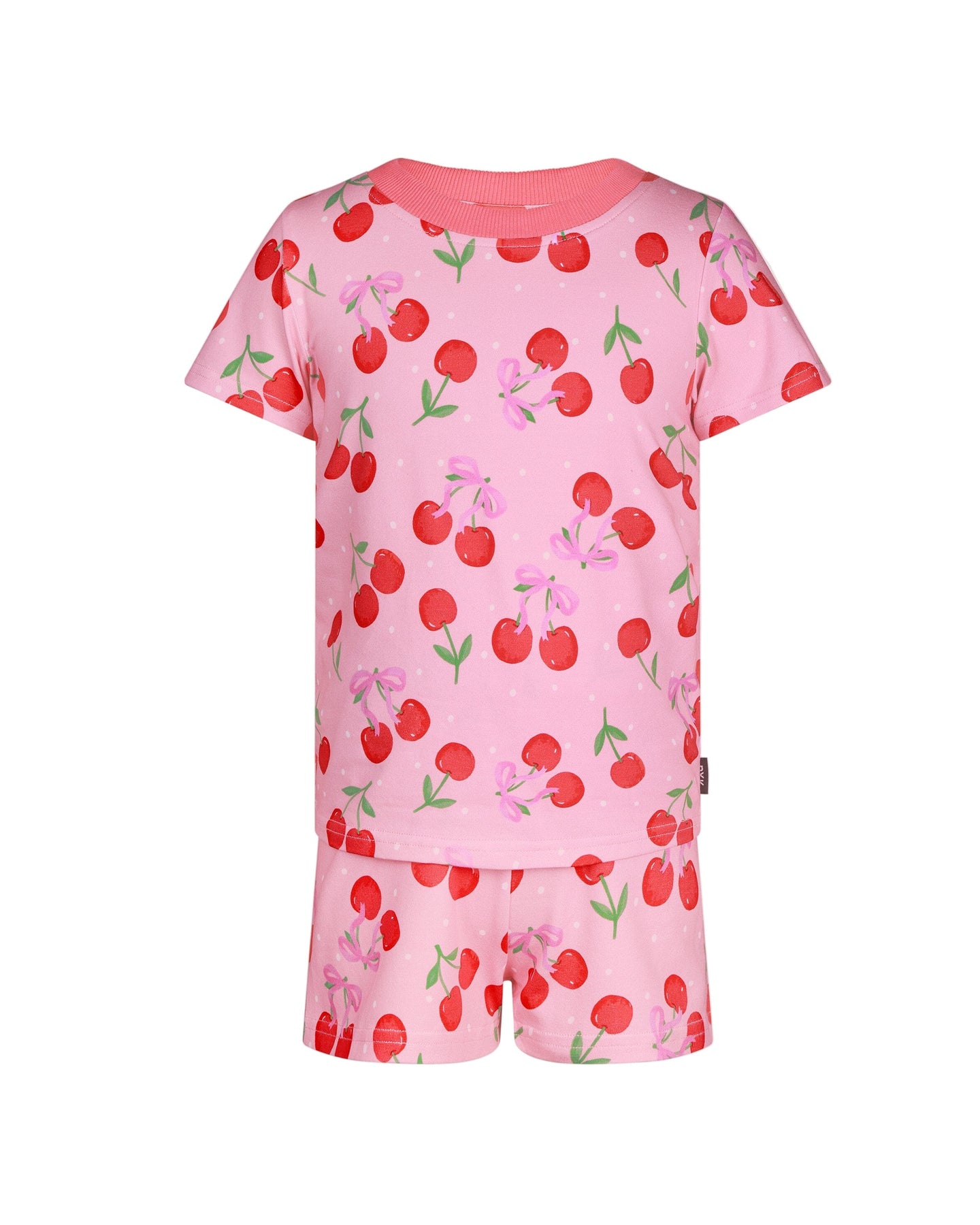 Rock Your Kid’s My Cherry Pie Pippa Sleep Set is crafted from soft cotton jersey for ultimate comfort. The pink t-shirt and shorts set is decorated with an all-over cherry print, making bedtime bright and cheerful.