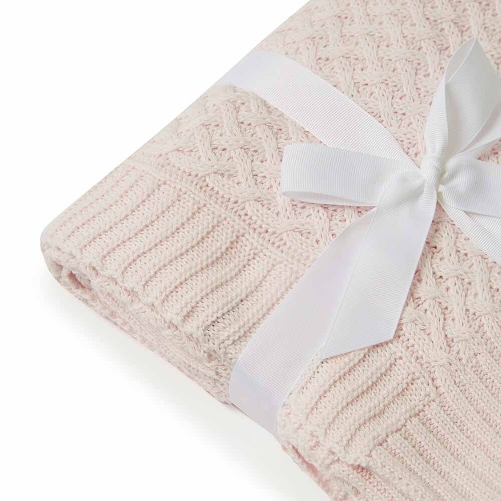 Our gorgeous Snuggle Hunny Blush Pink Diamond Knit Baby Blanket is made from super soft 100% cotton and keeps your child snug and warm. This would make the perfect gift for a new baby or a baby shower. Our Blush Pink baby blanket matches beautifully with many of our prints including our Camille collection, Spring Floral collection, Rainbow Baby, Ballerina and more.