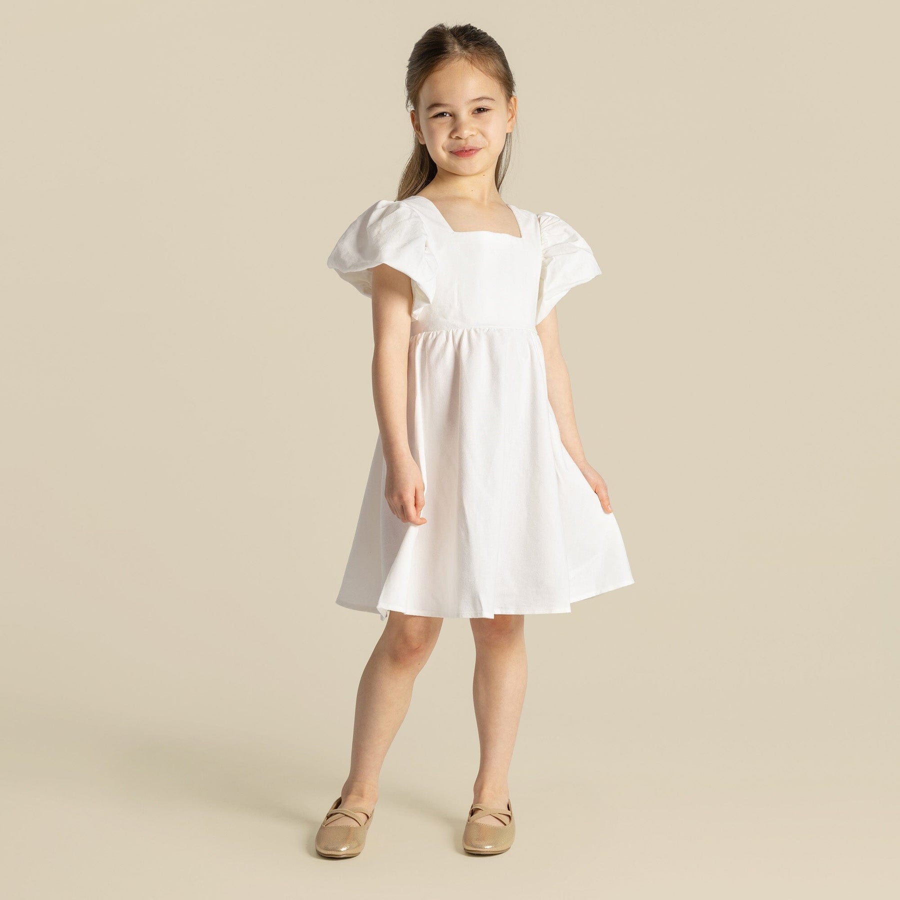 We are OBSESSED with the Grace Tie Back Dress, featuring puff sleeves, gathering at the waist, and stunning double tie feature at the back. Ideal for your girl's next wedding, Christmas gathering, birthday party or special occasion!