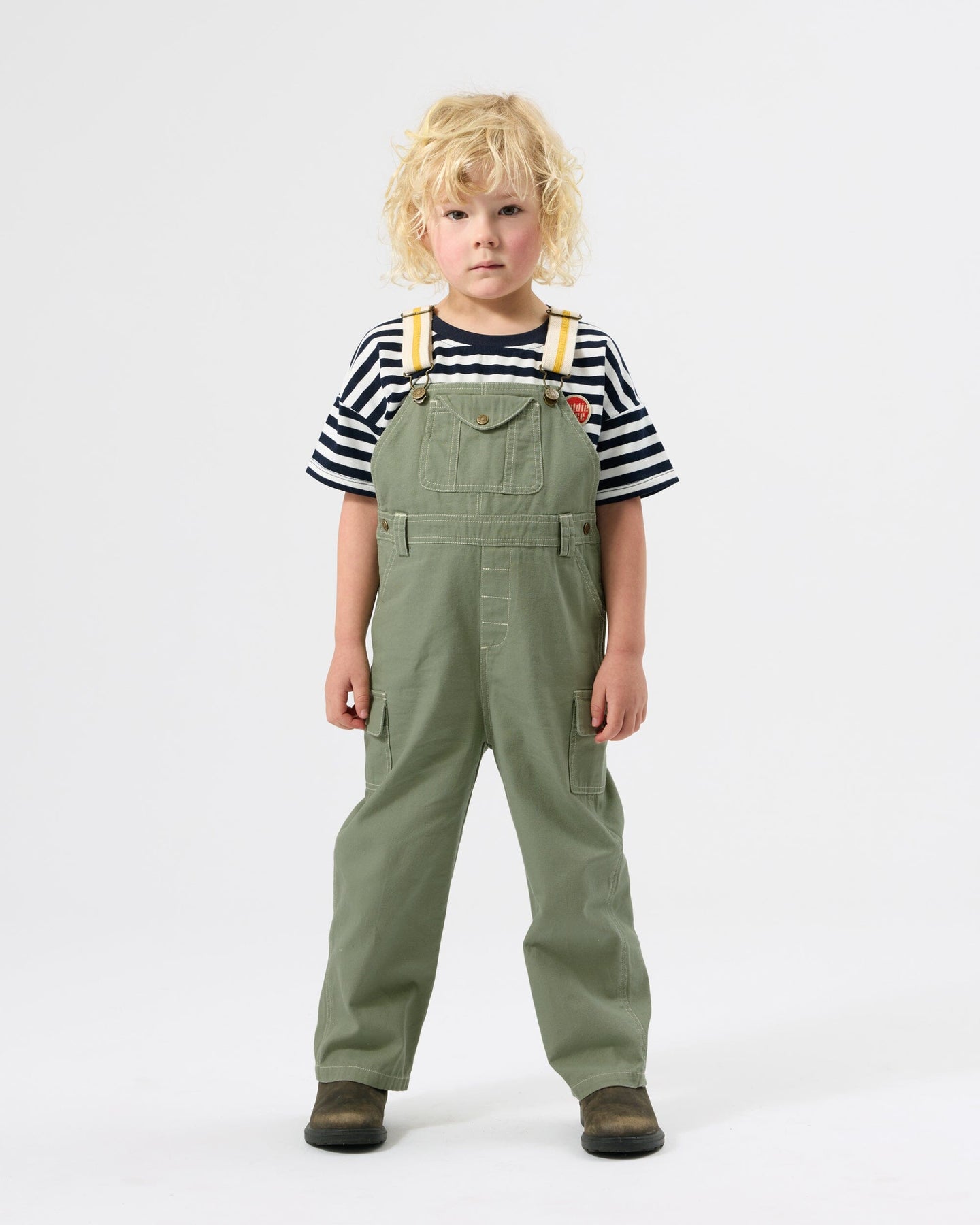 Crafted for versatility, these sage overalls from Goldie + Ace feature fully adjustable webbing straps and multiple functional pockets for convenience.