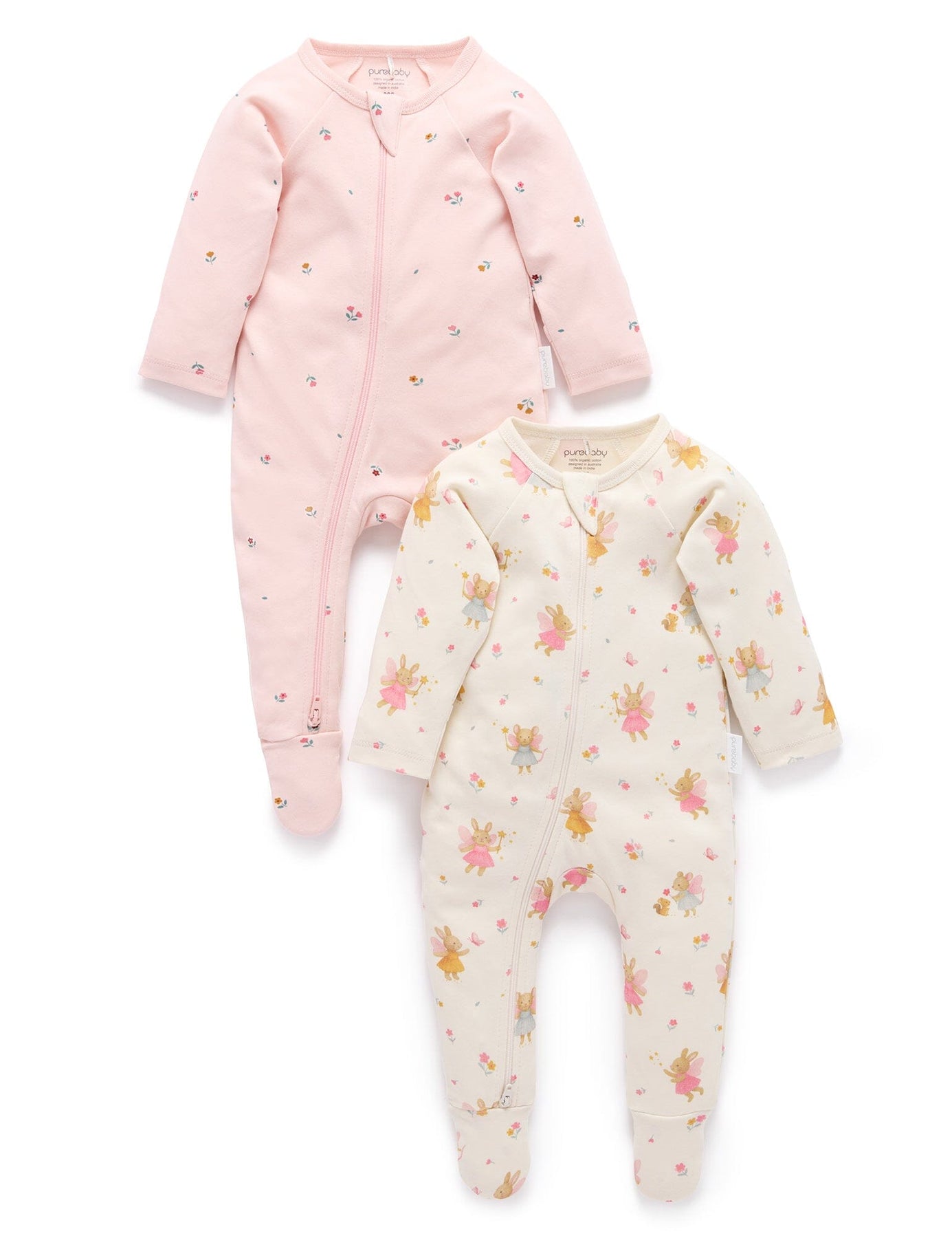 Purebaby - 2 Pack Zip Growsuit | Cloud Little Fairies