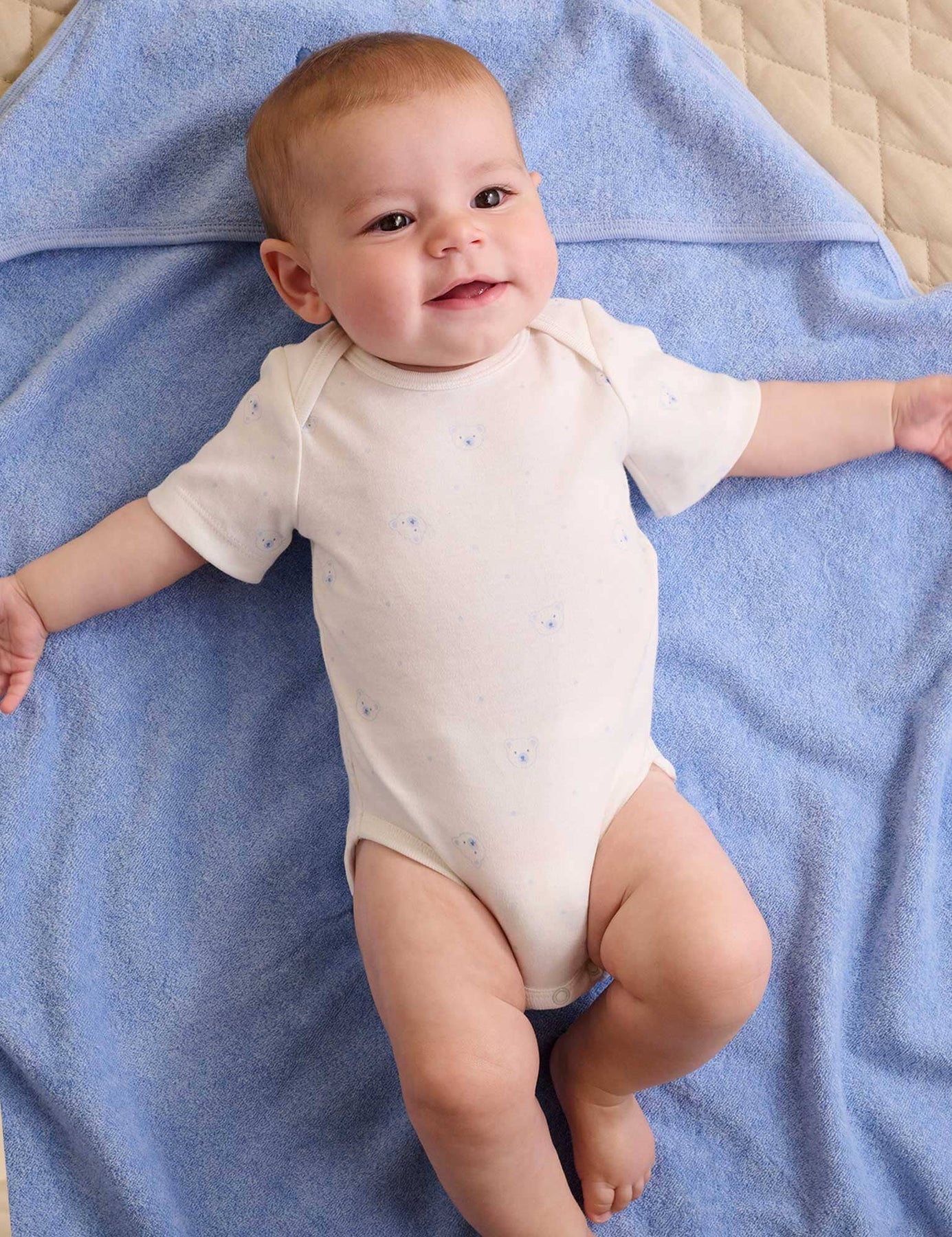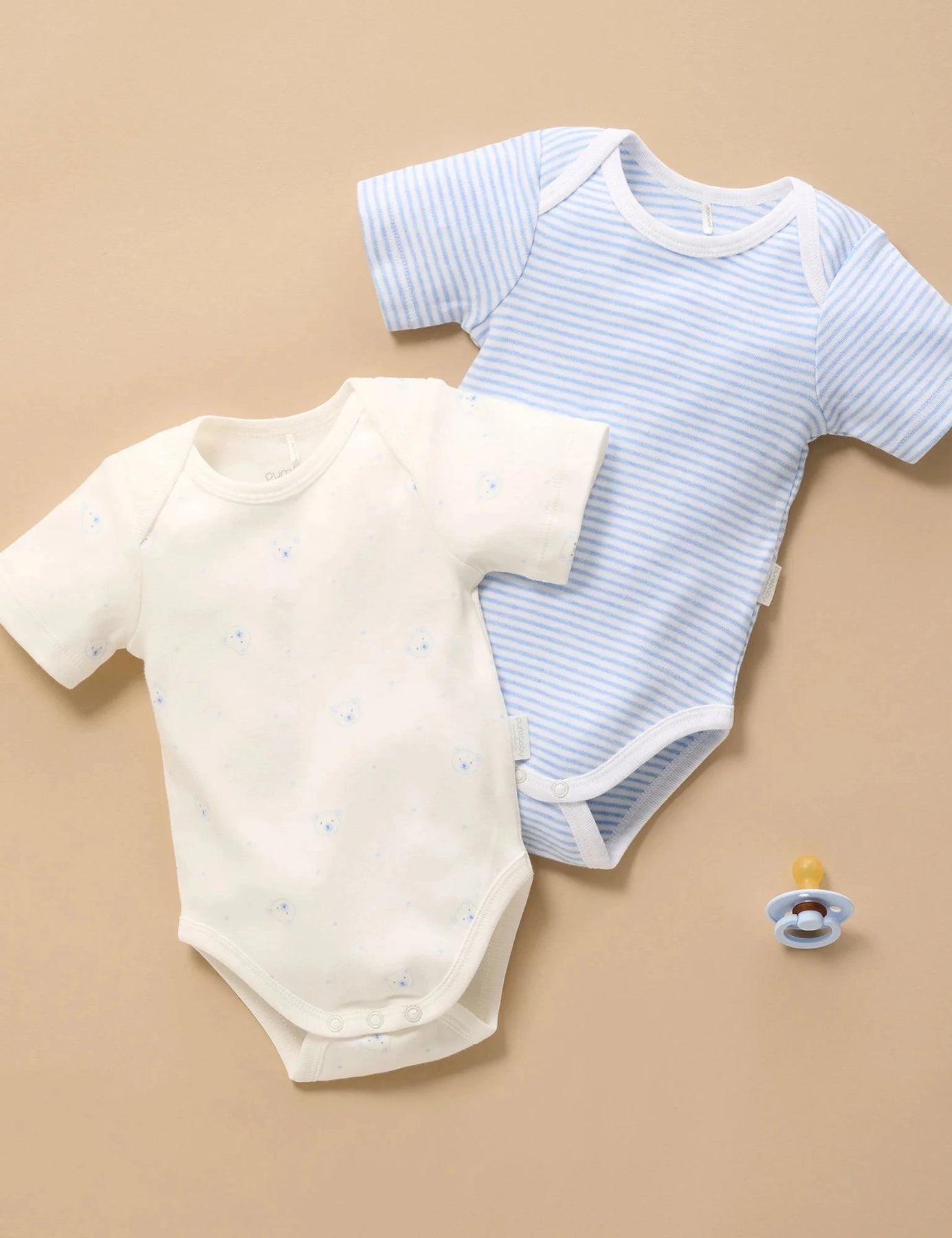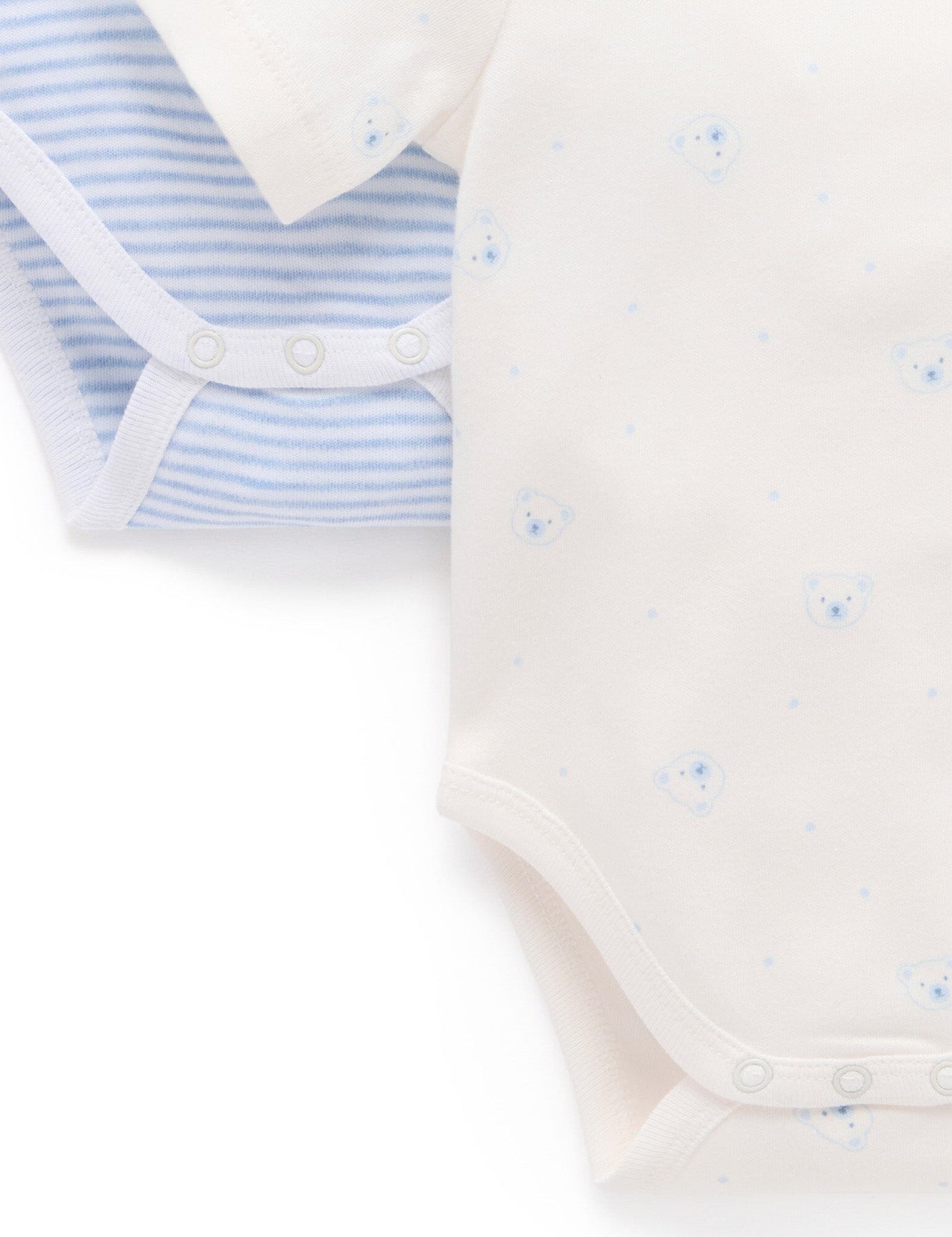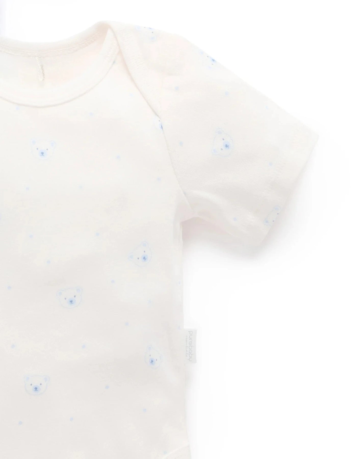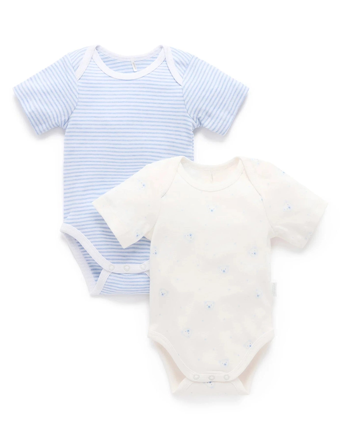 Pure Baby - 2 Pack Easy Neck Short Sleeve Bodysuit | Pale Blue Bear Bodysuit Purebaby