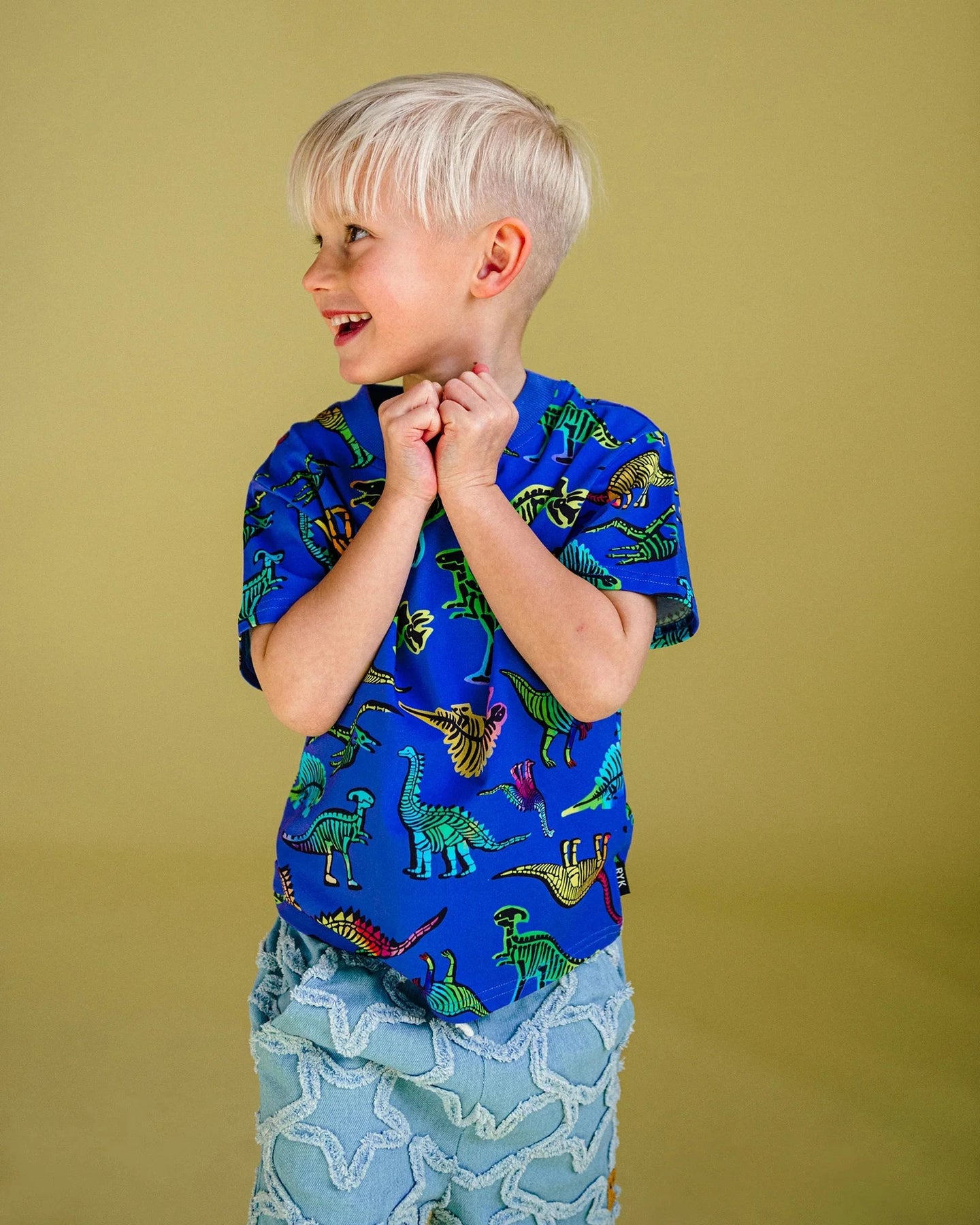 Bring playful summer vibes to their wardrobe with the Dino Pop Short Sleeve T-Shirt in blue. Crafted from soft cotton jersey, it’s breathable and comfy for all-day adventures. Featuring an all-over dinosaur print, short sleeves, and a ribbed neckline for extra comfort, this T-shirt is perfect for park play, holidays, or casual outings. Fun, practical, and full of personality, it’s a summer essential that little explorers will reach for again and again.