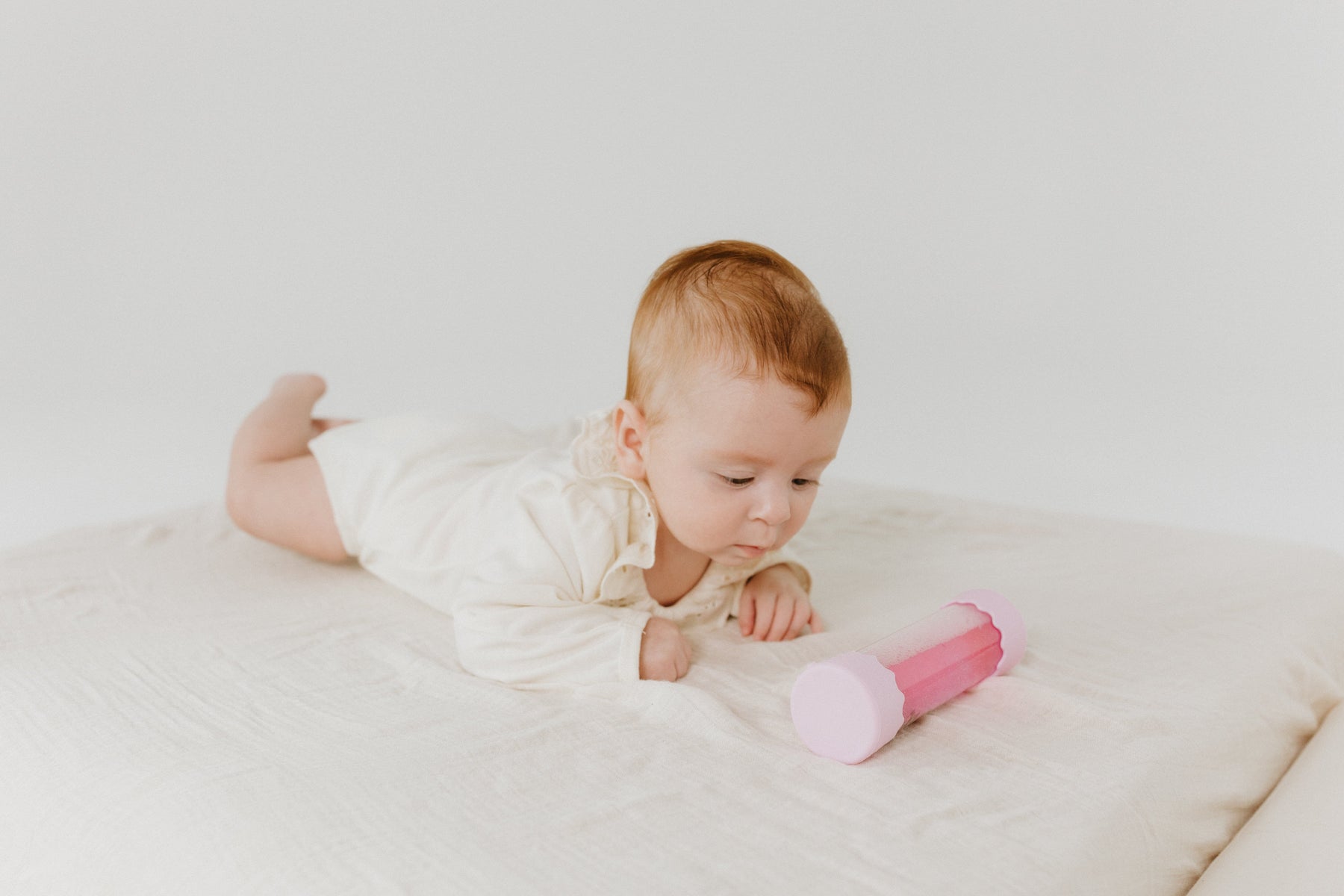 Babies are captivated by the swirling sparkles and glitter. The transparent design allows your little explorer to watch a symphony of colours, shapes, and textures swirling within, providing endless fascination and visual stimulation. It’s the perfect tummy time activity as they babies roll it back and forth on playmats.