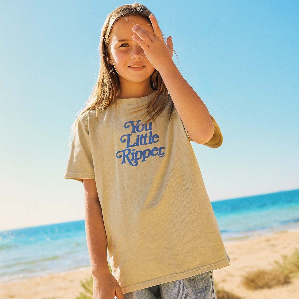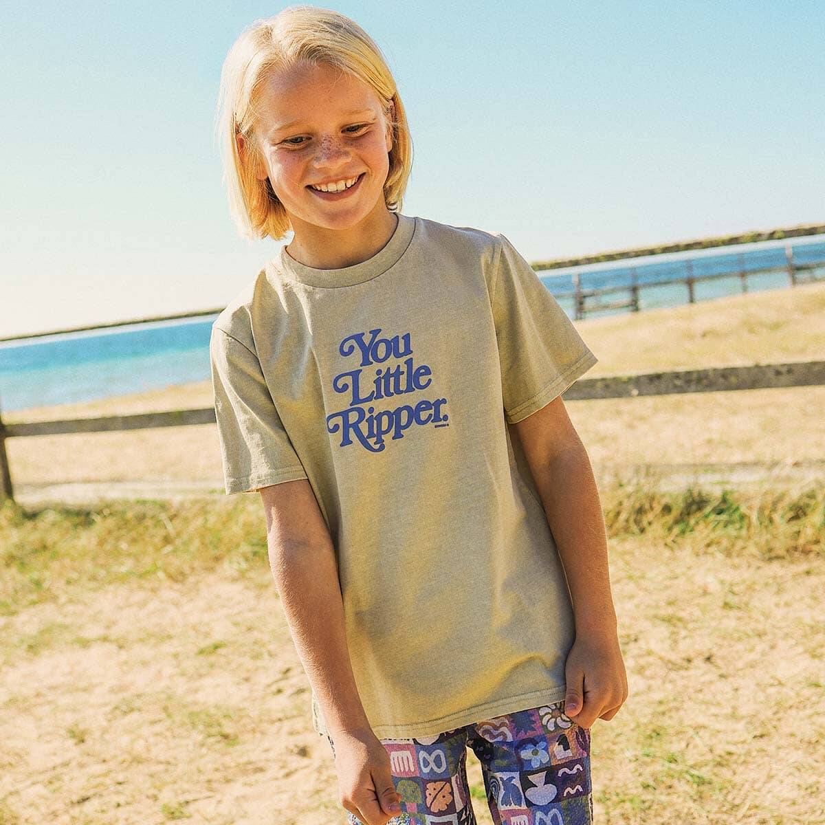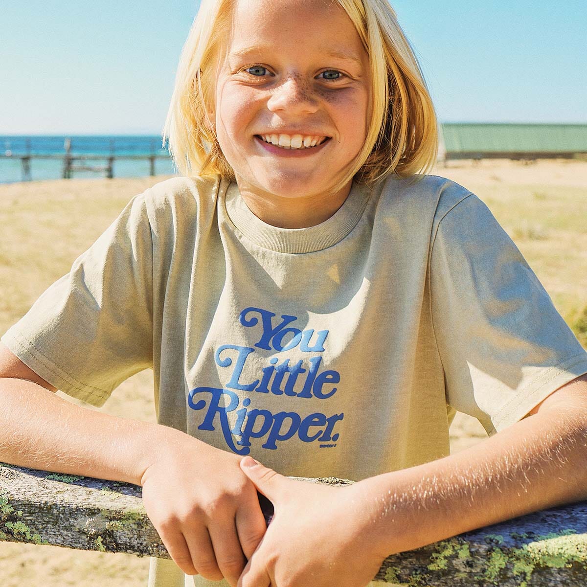 Bring a little Aussie cheek to playtime with the You Little Ripper Kids Slang Tee in Stone. Made from soft, breathable cotton, this comfy regular-fit tee features a bold blue puff print slogan on the front. With a ribbed neckline and high-low hemline, it's perfect for playground adventures, weekend fun, or relaxed days at home - a playful staple for any little wardrobe.