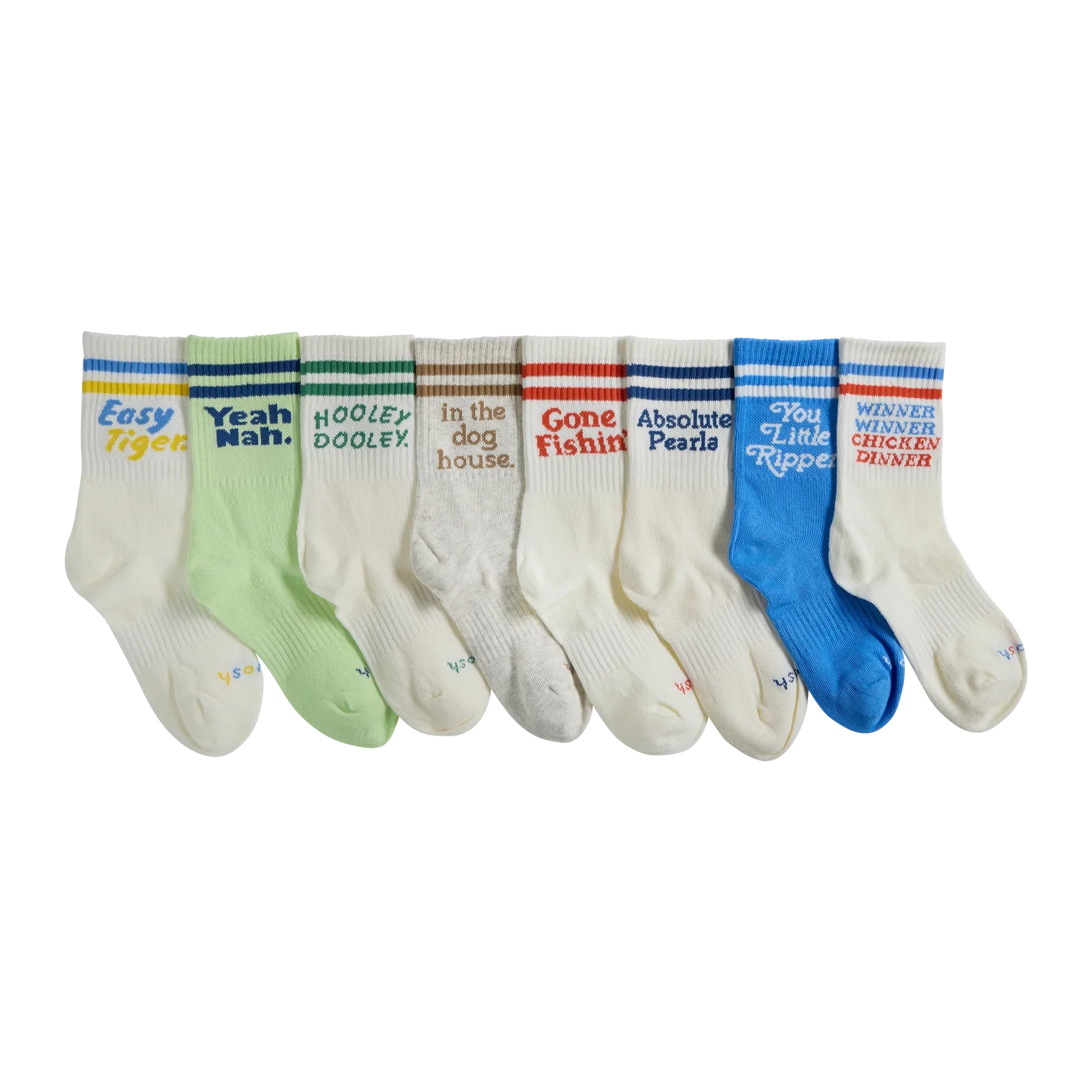 Soft and stretchy cotton blend Knitted Aussie Slang Ribbed cuff for secure fit Lightweight and breathable for everyday wear Available in Kids 9-12, Teen 13-3 sizes Due to hygiene reasons, socks can not be returned unless faulty.