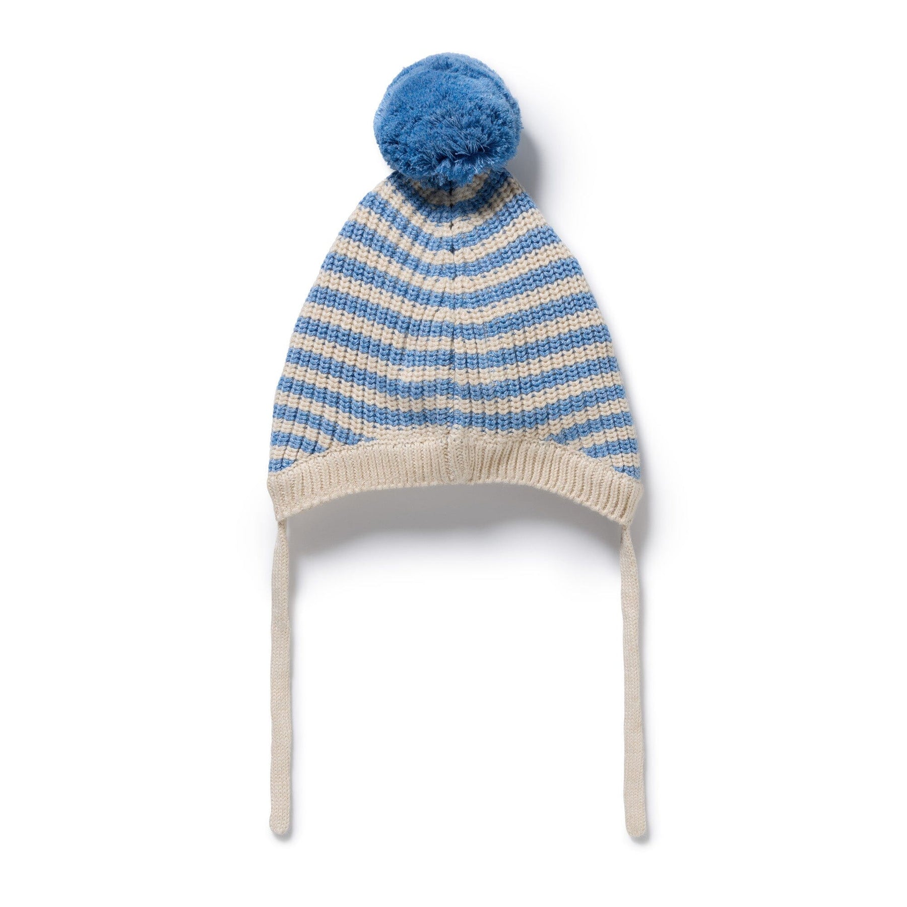 Keep your little one cosy with this Wilson and Frenchy knitted stripe bonnet. Made from a luxurious blend of organic cotton, bamboo, and wool, it will keep their head and ears warm. The soft knit ties ensure a snug fit. Perfect for chilly days.