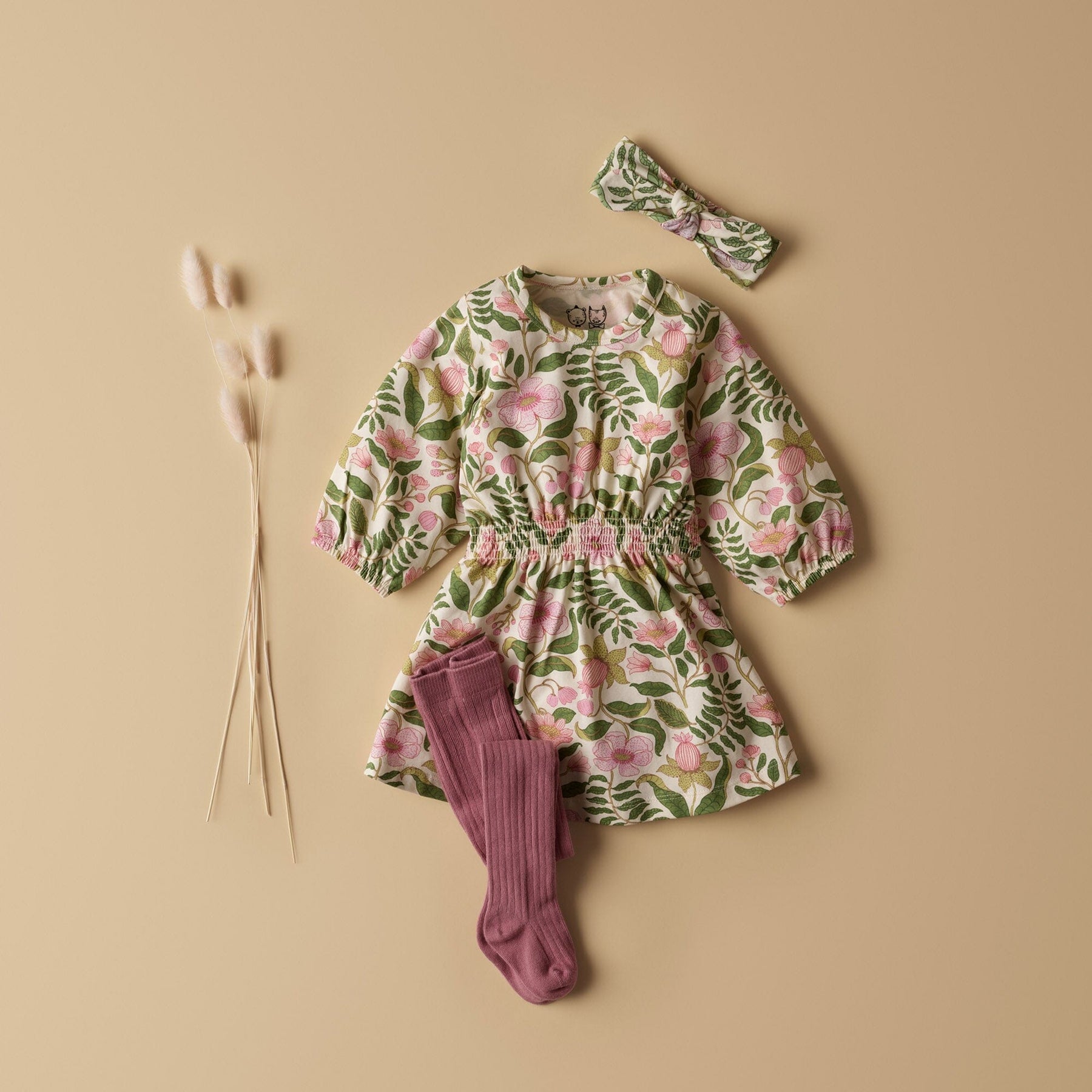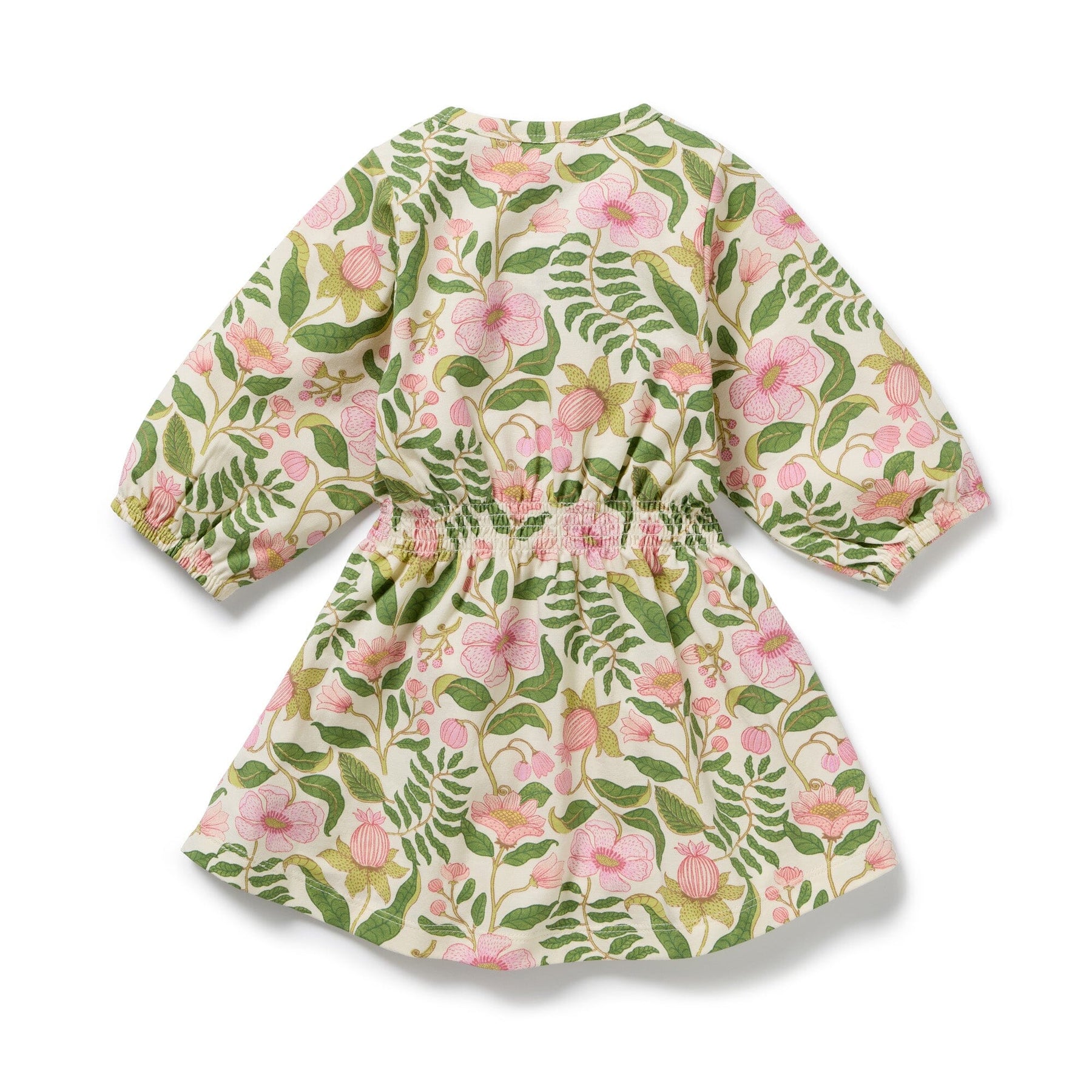 Add a touch of whimsy to your little one's wardrobe with this all-over print jersey dress from Wilson and Frenchy. Designed for both comfort and style, this baby dress features a shirred waistline for a gently gathered look and bell-shaped sleeves for a sweet, playful silhouette. Crafted from soft and breathable jersey fabric, it's perfect for everyday wear or special outings. The all-over print adds charm and character, making it a standout piece in any season.