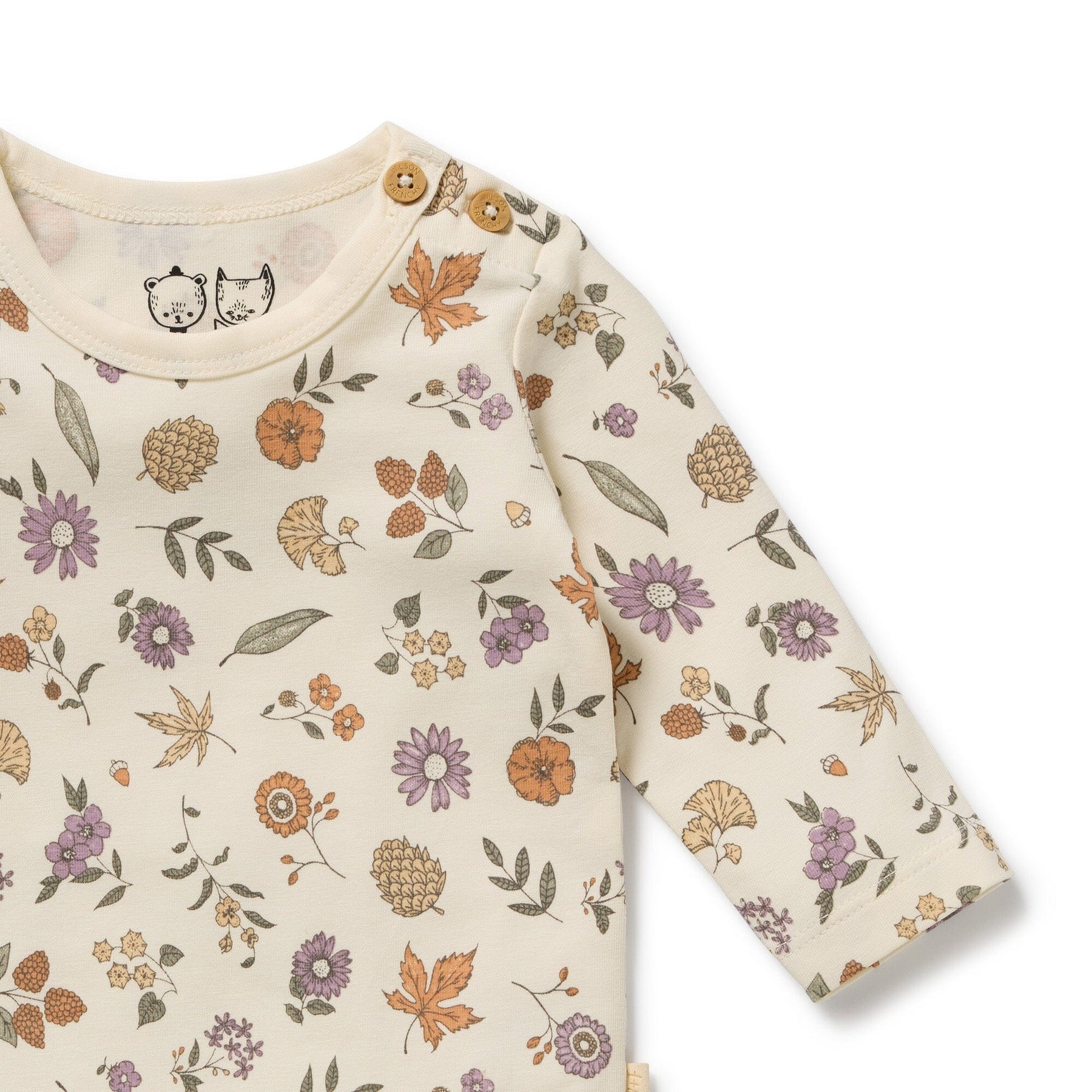 Discover the charming blend of comfort and style in our adorable organic long sleeved bodysuit by Wilson and Frenchy. With a unique hand-illustrated print, this little piece is a must-have for your baby's wardrobe. Easy snap leg opening offers hassle-free dressing and nappy changes, while the stretch organic cotton guarantees unrivaled comfort.