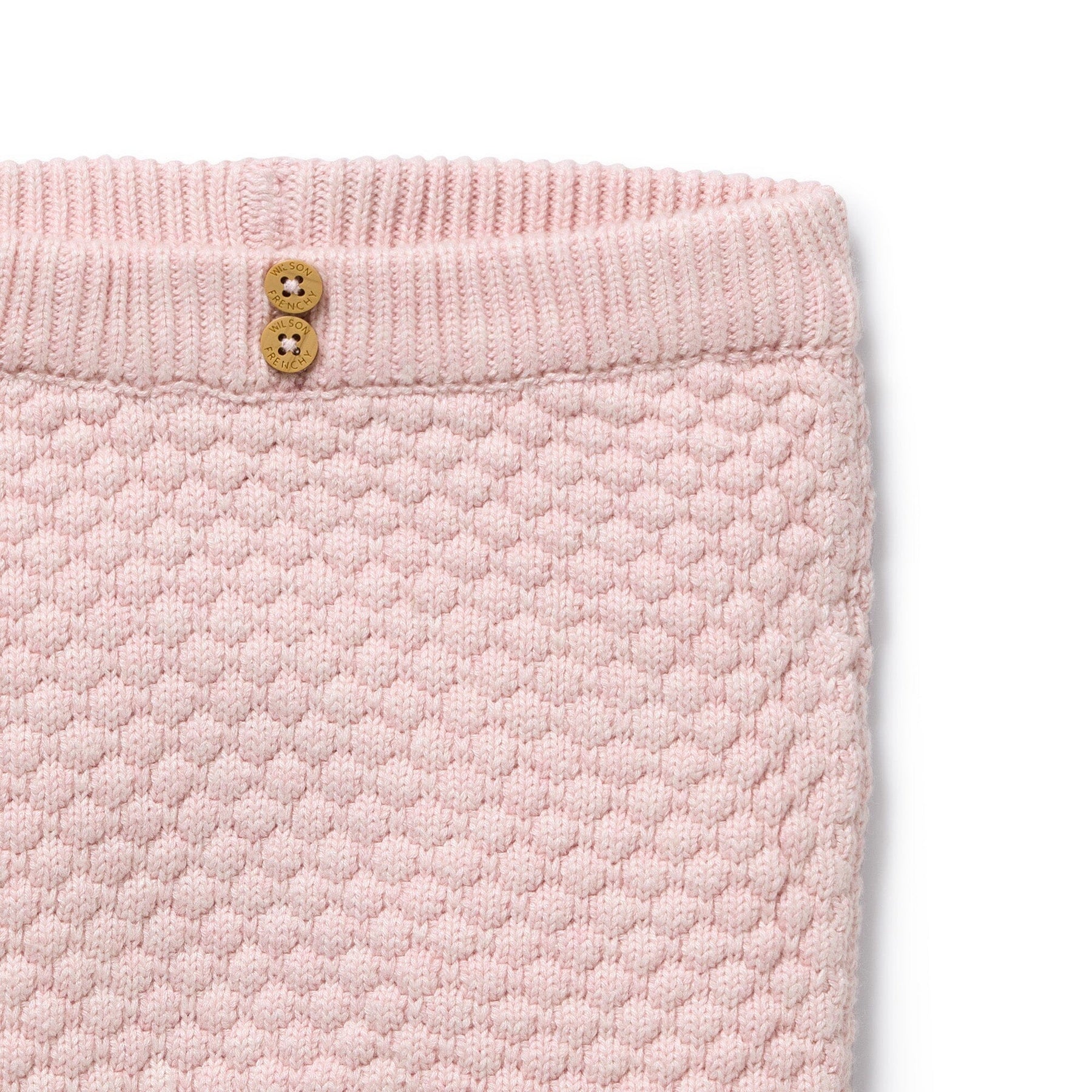 Stay cosy and stylish with these knitted baby leggings from Wilson and Frenchy featuring a sweet bauble design. Made from a soft and breathable blend of organic cotton, bamboo, and wool, these leggings are perfect for keeping little legs warm and comfy all day long. The gentle elastic waistband ensures a snug fit without digging into delicate tummies. A must-have for everyday wear during the cooler months.