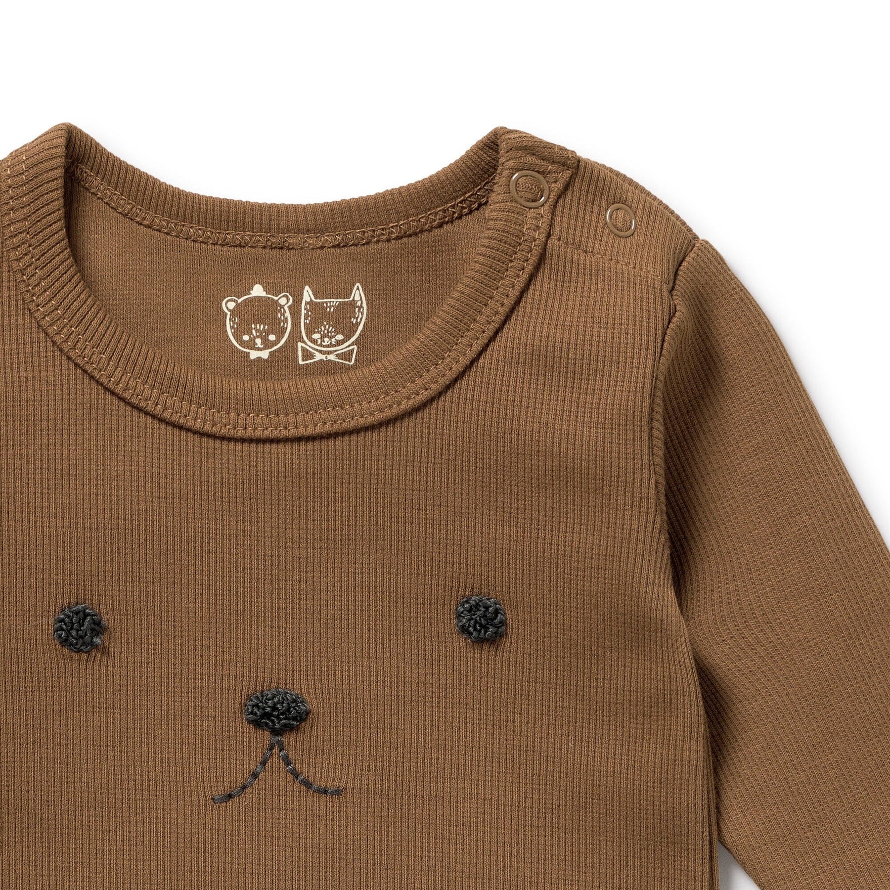 This long sleeved organic stretch rib top from Wilson and Frenchy is made with GOTS certified organic cotton rib. Featuring a cute bear embroidery, this is a winter must-have!
