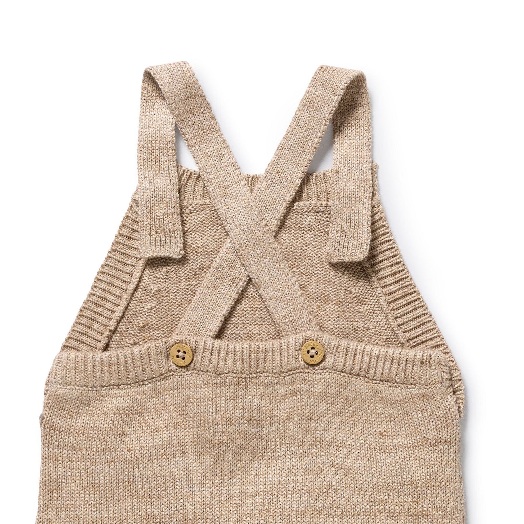 This full-length knit overall from Wilson and Frenchy features button-up shoulder straps and a snap leg opening for quick and easy nappy changes. Made from a beautiful blend of cotton, bamboo, and wool, it is soft, warm, and perfect for cooler days. A must-have layering piece for your little one's winter wardrobe.
