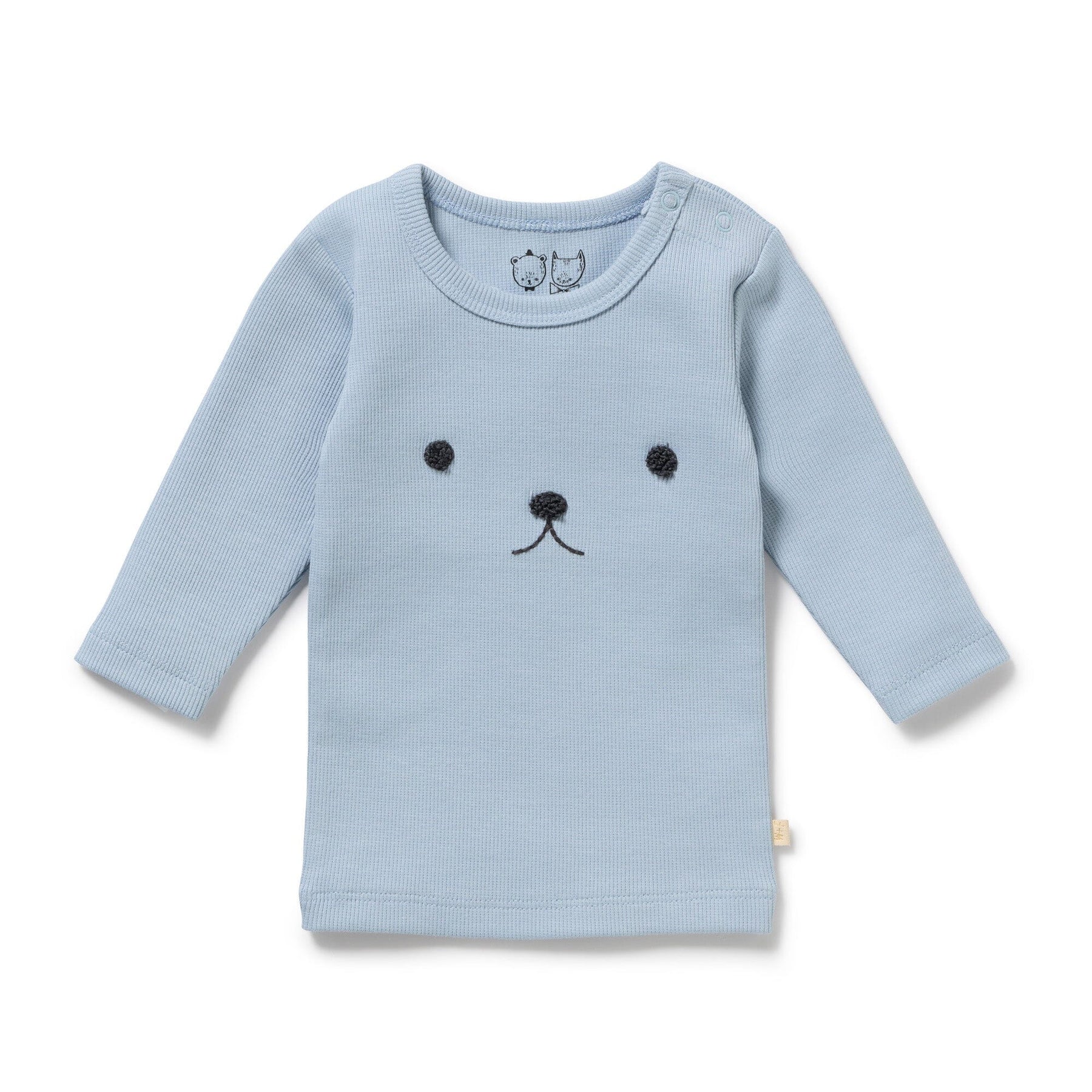 This long sleeved organic stretch rib top from Wilson and Frenchy is made with GOTS certified organic cotton rib. Featuring a cute bear emboridery, this is a winter must-have!