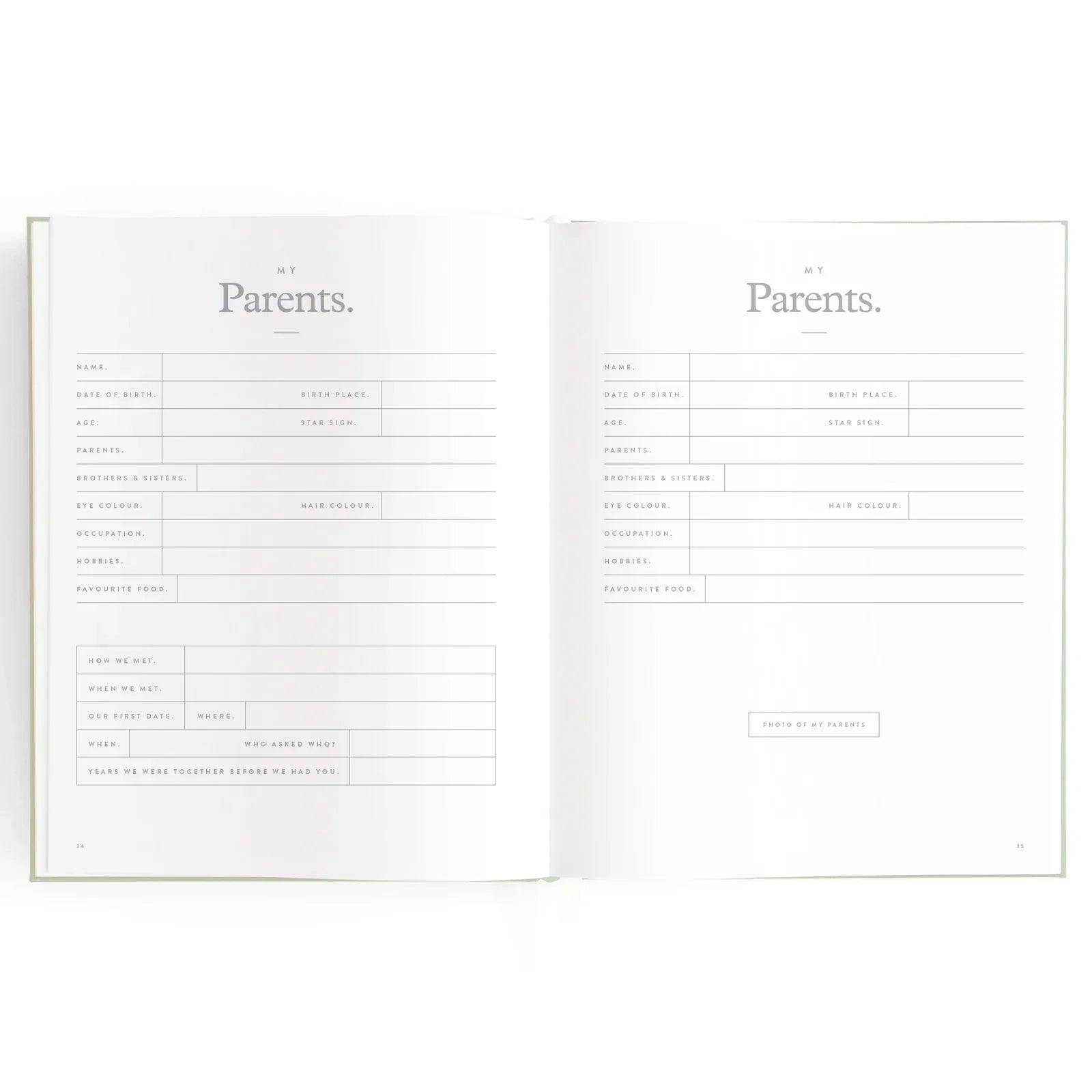 A beautiful keepsake for the whole family to enjoy. Includes: important milestones and firsts, family profiles, family tree and travel map, playgroup and daycare through to kindy and school years, time capsule, nicknames and celebrations, pets, friends, birthdays and more.