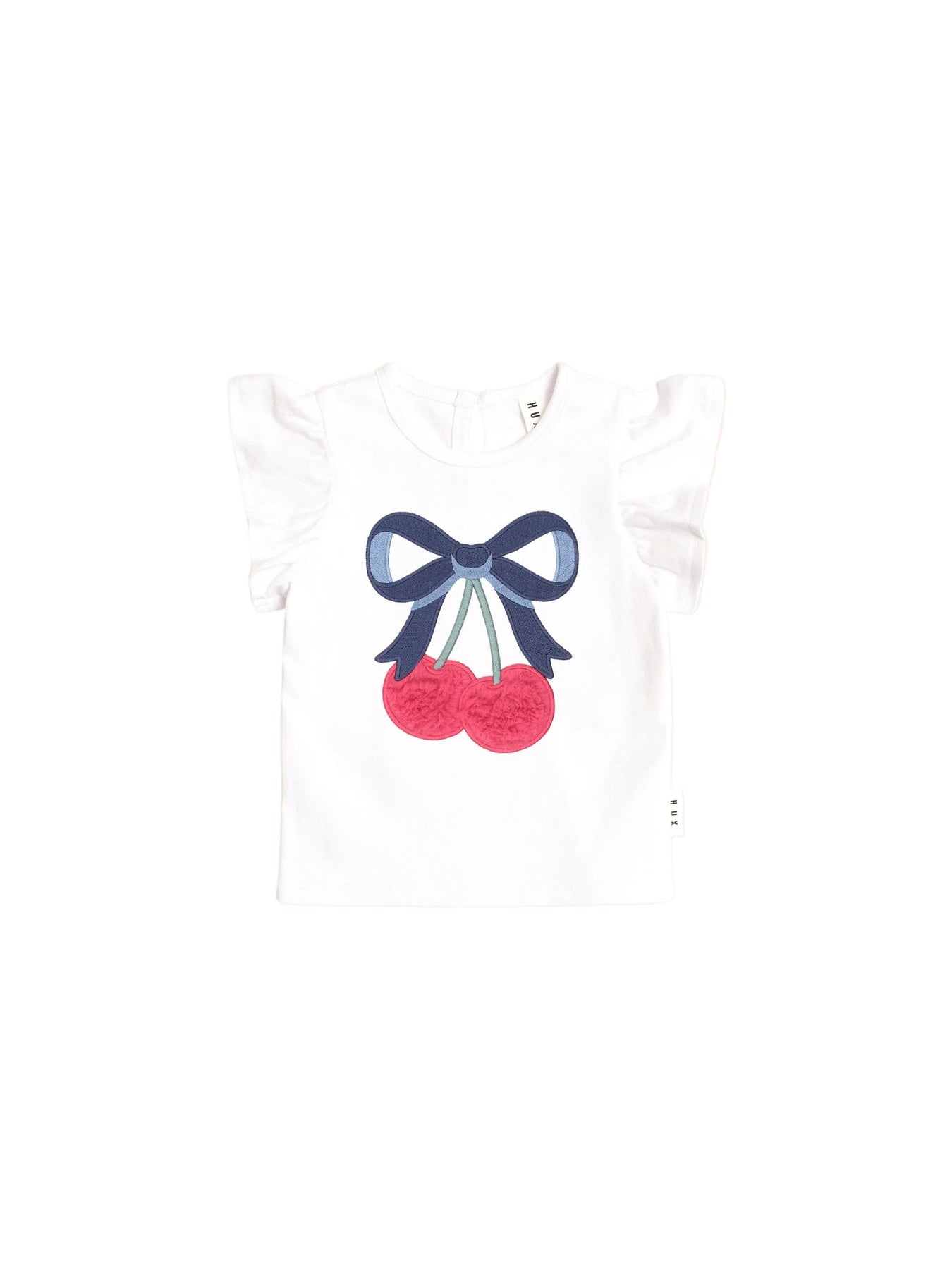 An extra special everyday tee, crafted from the comfiest organic cotton with just the right amount of stretch. It has a shoulder frill detail and cherry bow embroidery.