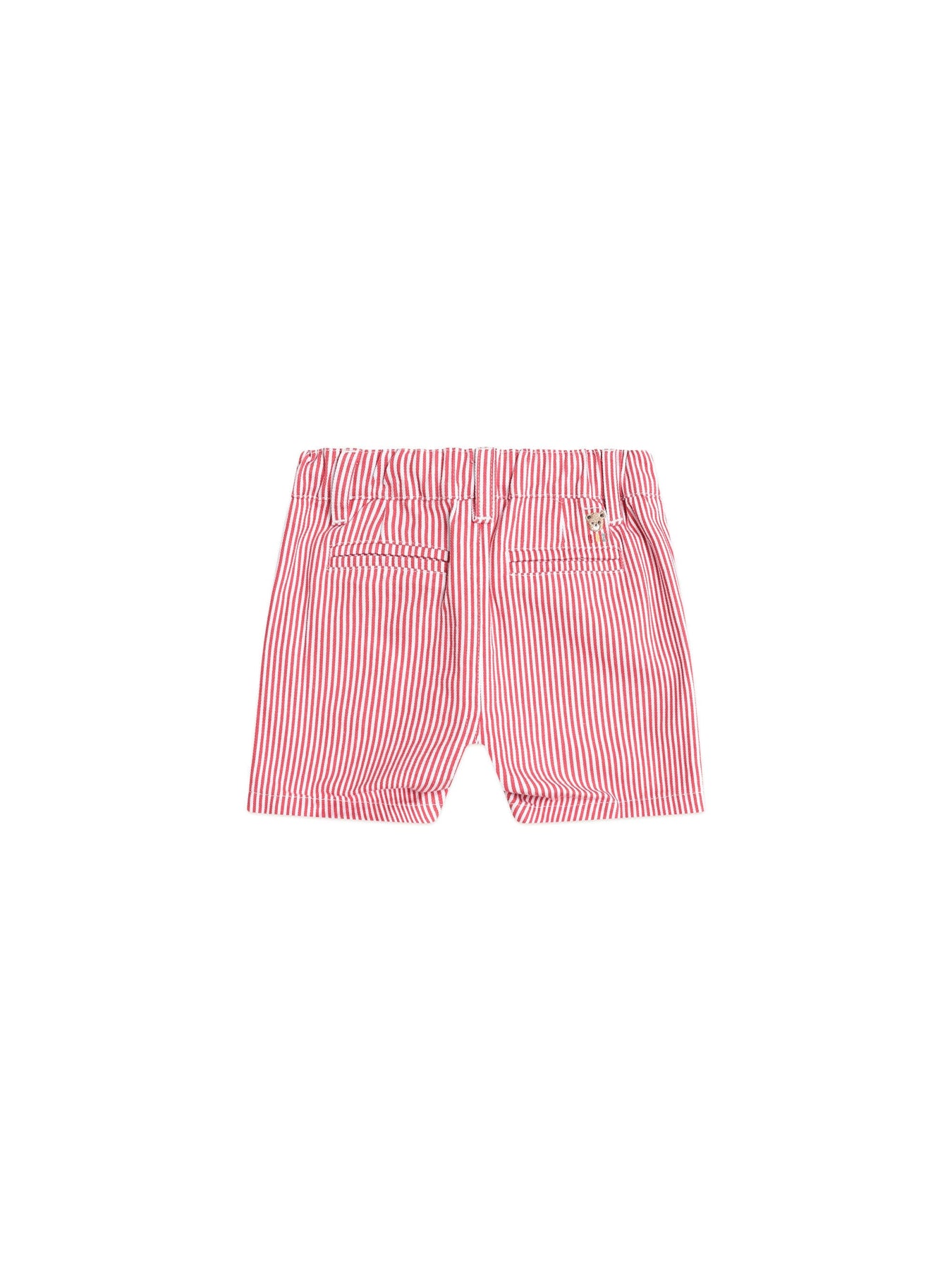 The perfect red pinstripe chino short for warm weather festive occasions. Dress them up or down. Made from a soft cotton twill, they feature a peeping Huxbear embroidery on the back and an internal button waistband and belt loops for adjustable waist. Zipper fly on sizes 4 and up.