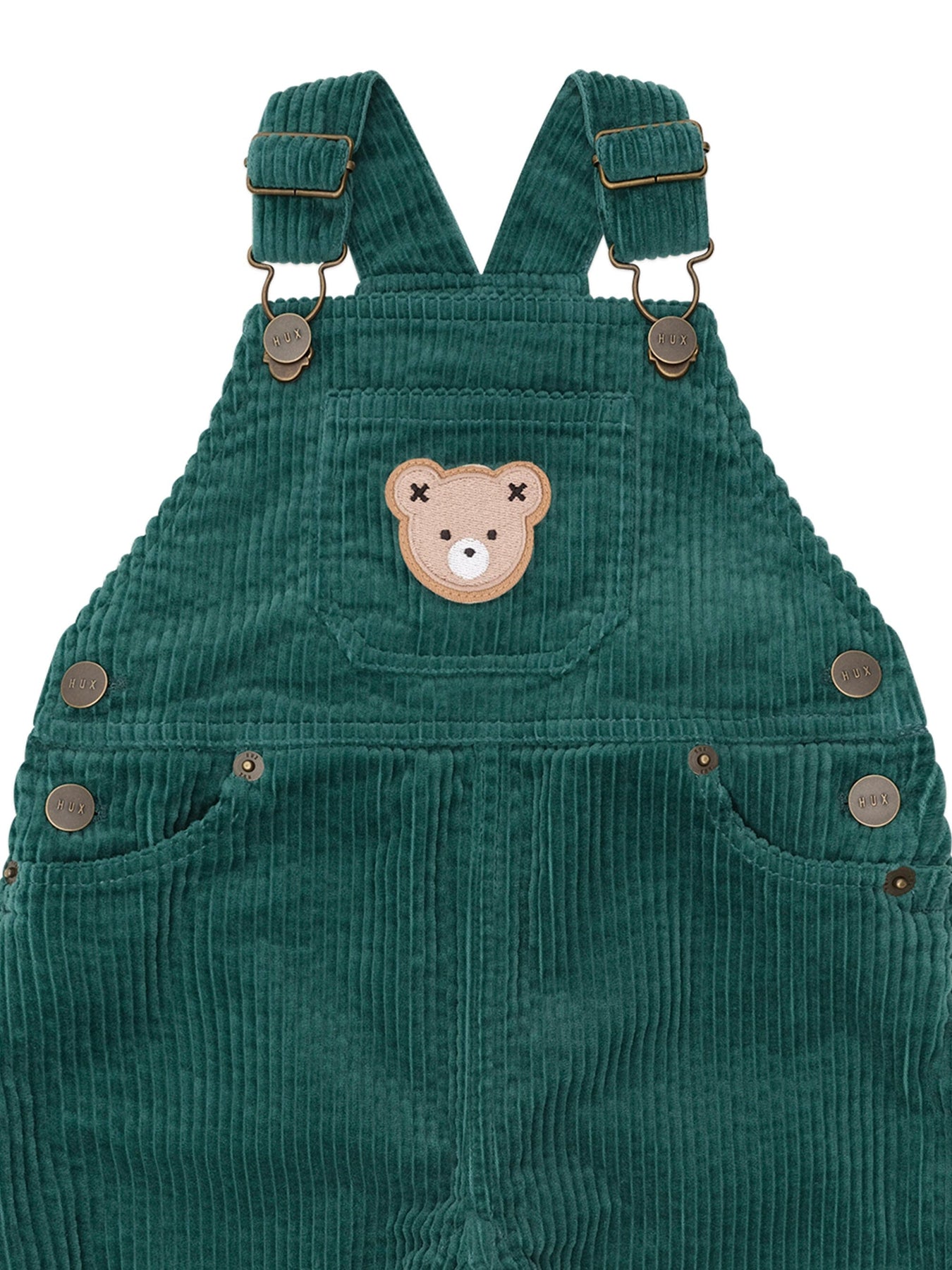 A classic pair of 90s short overalls in forest cord. They feature adjustable straps for comfy wear, chest, side and back pockets perfect for stashing treasures in and a classic Huxbear embroidery. Baby sizes include stainless steel crotch snaps for easy dressing. Style them alone or over a tee.