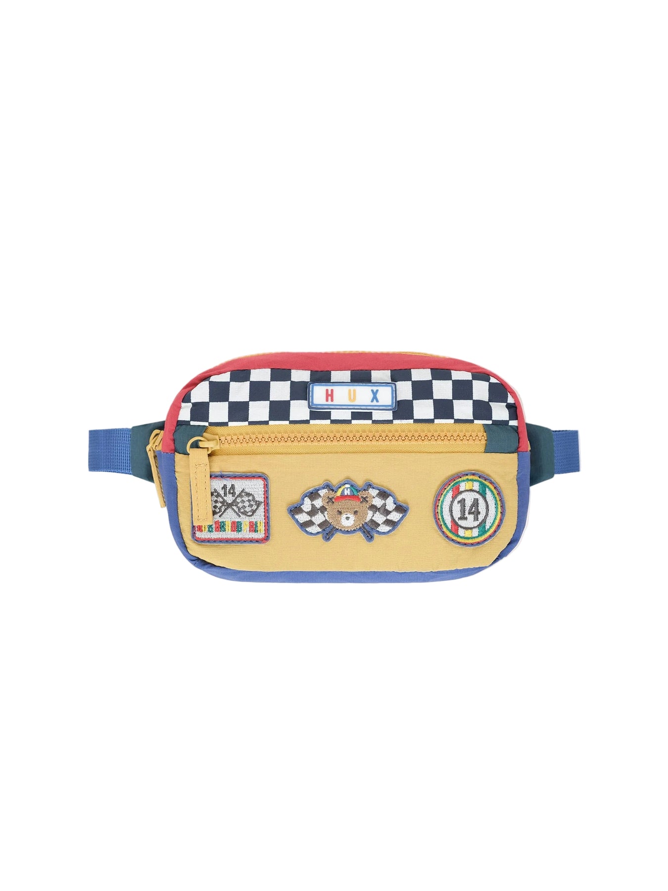 The best bumbag to stash snacks, pebbles or any other playground treasures. Featuring a racecar design, plus Hux badges. Comes with "Hux Bucks" play money inside.