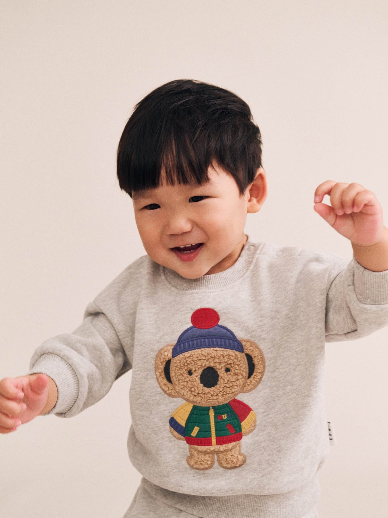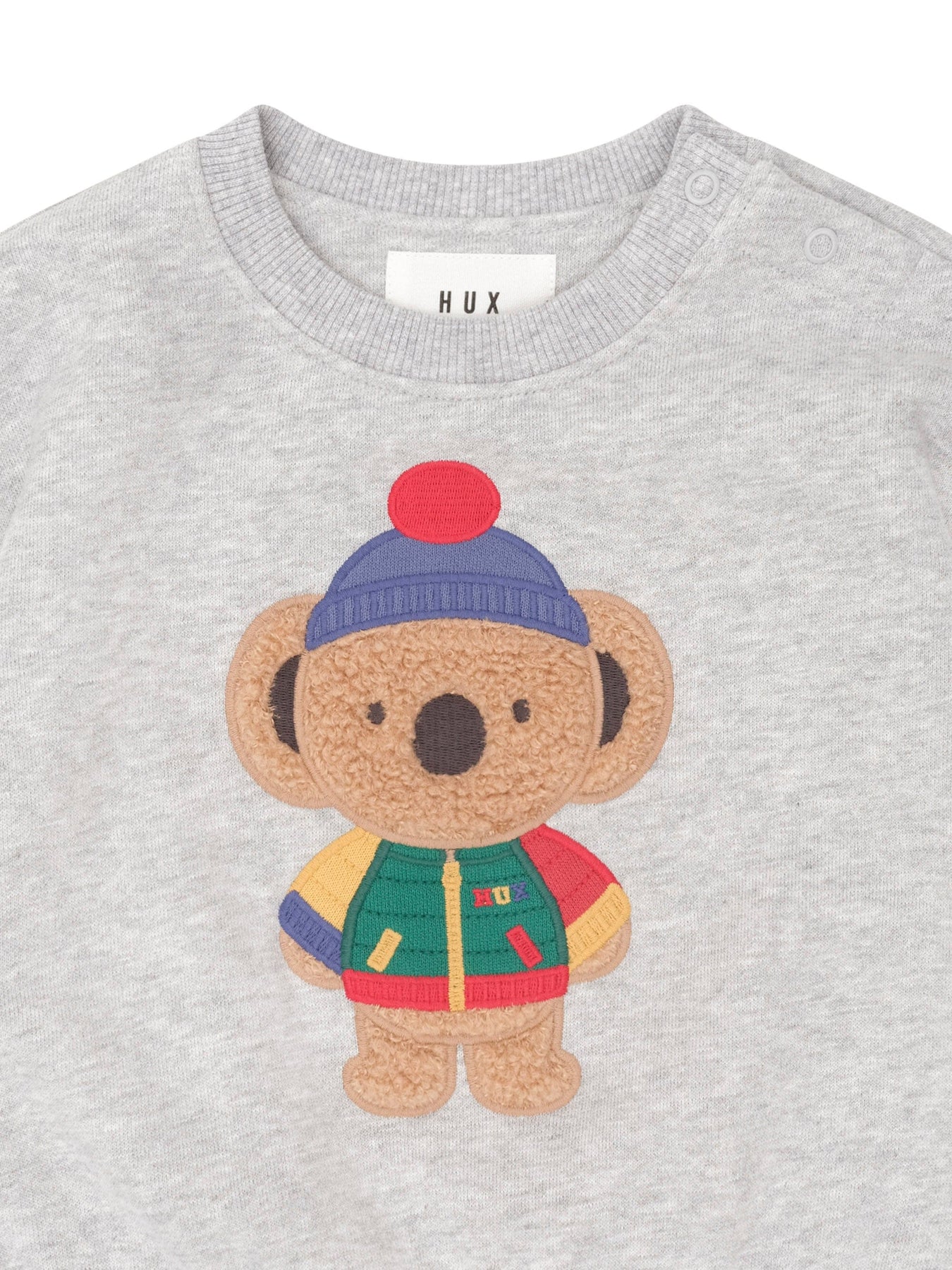 Stay warm and cosy in this fluffy fleece sweatshirt. Made from organic cotton, it features tummy-sized Kel the Koala embroidery. Baby sizes include stainless steel back snaps for easy dressing.