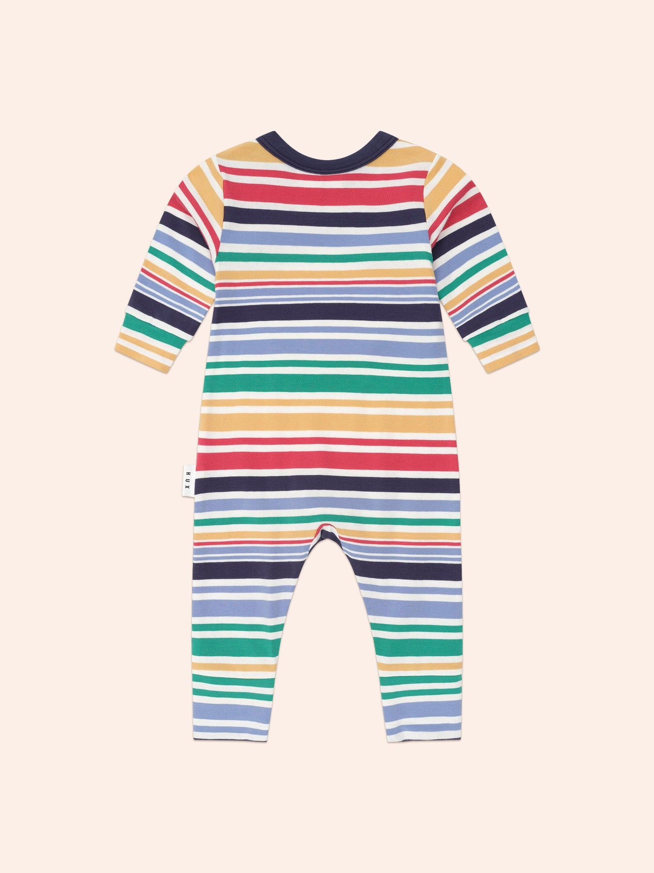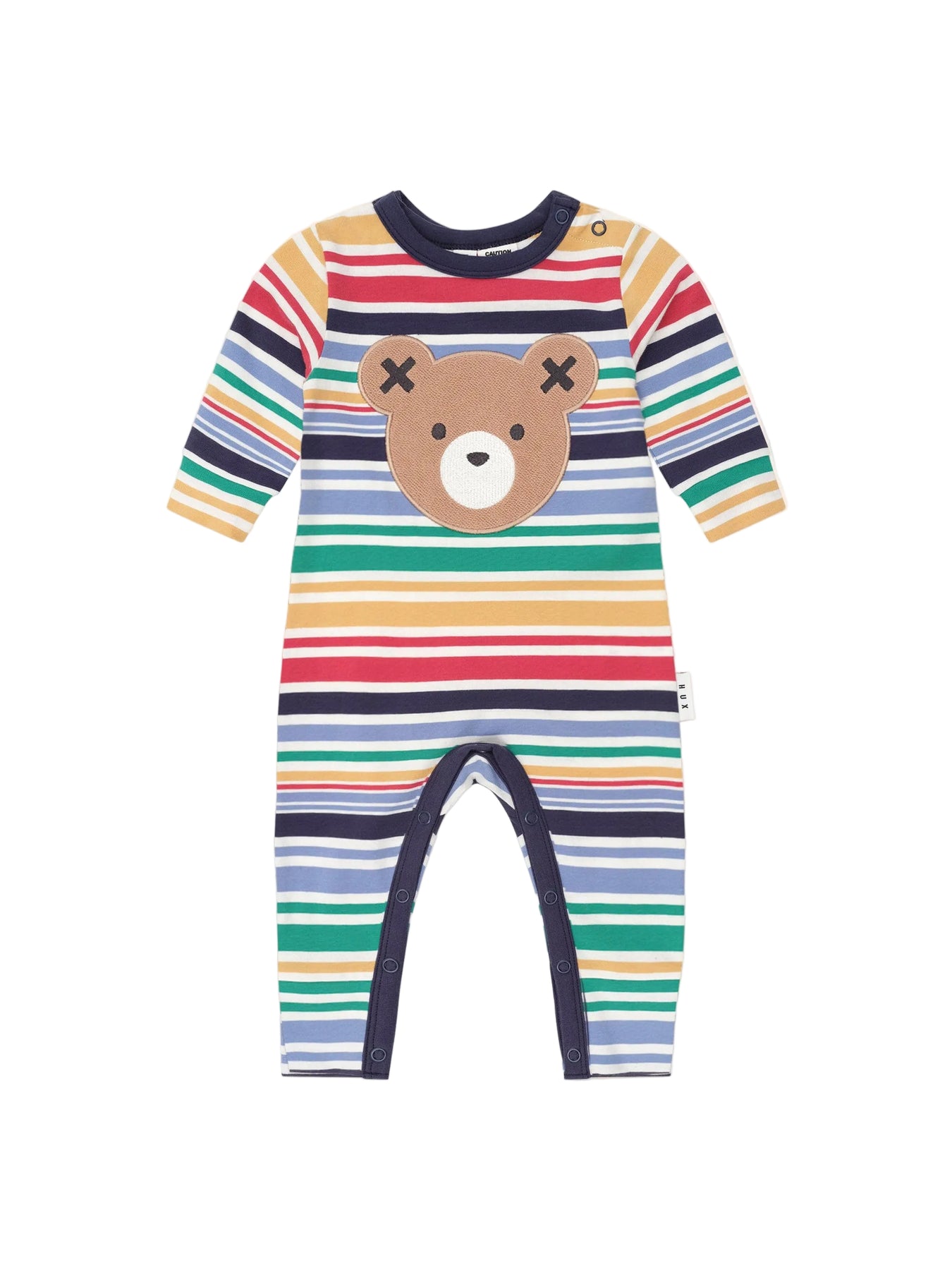 A marshmallow-soft vintage stripe romper with fun and furry Huxbear embroidery. Consciously crafted from premium organic cotton, it has stainless steel snaps at the shoulder and crotch for super snappy dressing. Just add squishy legs.